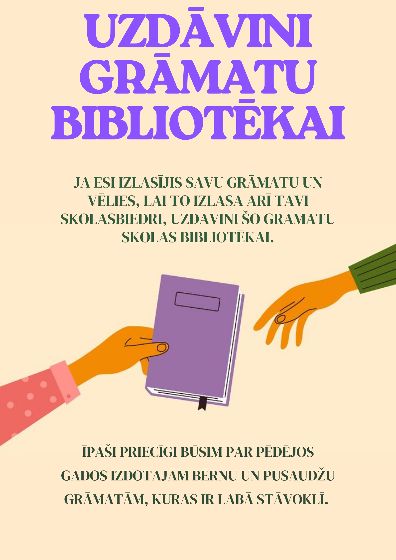 Aicinām arī pārējos pievienoties un dāvināt grāmatas, kuras varētu iepriecināt citus lasītājus. Jūsu ziedotās grāmatas atradīs sev jaunu dzīvi bibliotēkas plauktos!