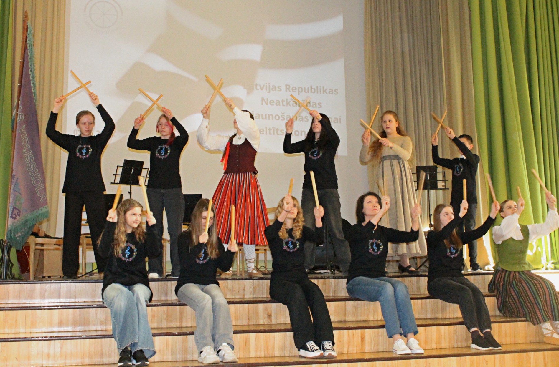 Latvijas Republikas Neatkarības atjaunošanas dienai veltītā 4. maija koncerta fragments. Muzikālais projekts “Spēlē kopā ar skolotāju”. Izpilda “Eksperimentāli-instrumentālais ansamblis” kopā ar Ulbrokas vidusskolas skolotājiem