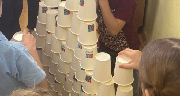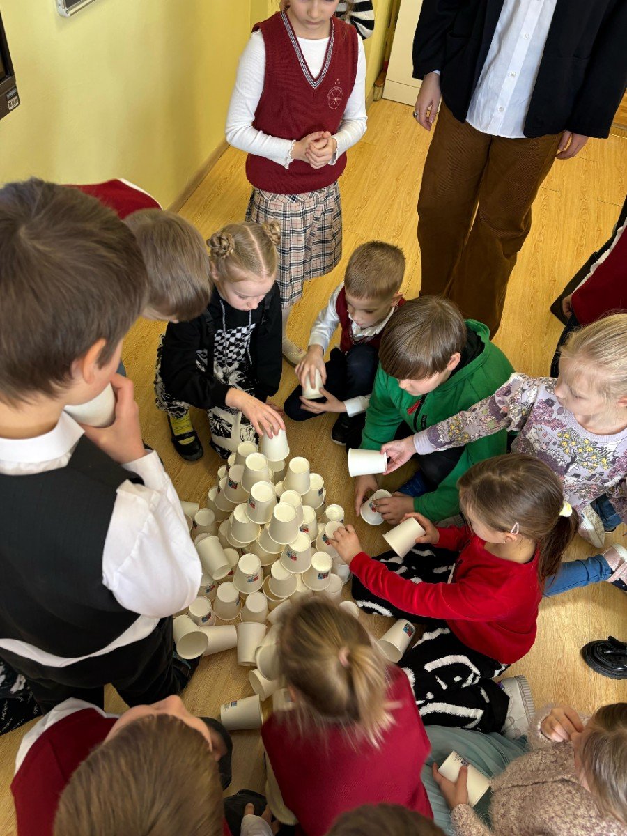 Kādas bijušas pirmās 100 skolas dienas? Atbildes meklējām kopā sirsnīgā svētku noskaņā, aizrautīgi veicot uzdevumus grupās un pacietīgi sadarbojoties visai klasei augstākā torņa būvē no 100(!!!) papīra glāzītēm.