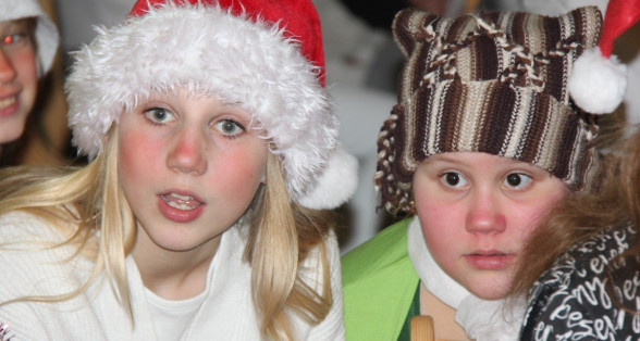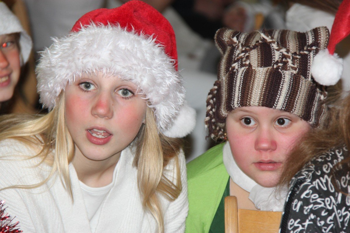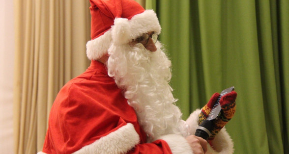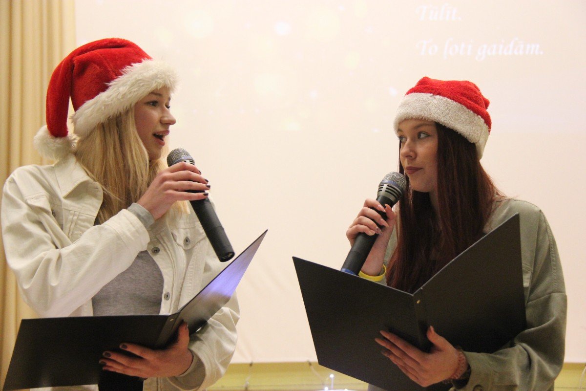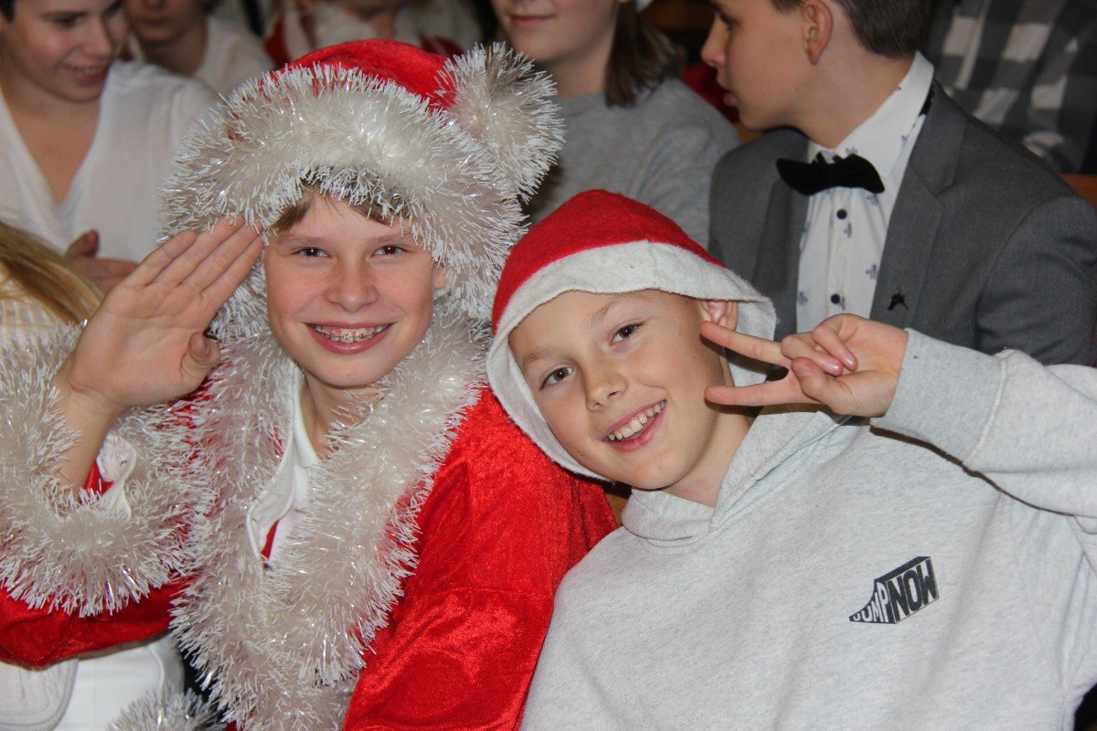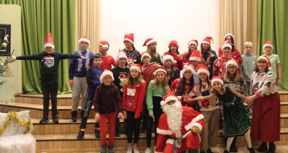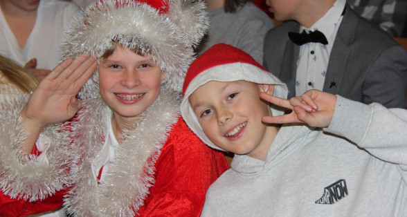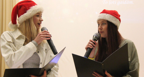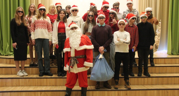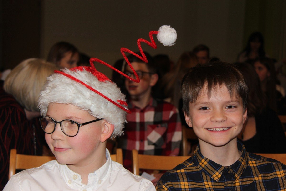 Skolas Svētku zālē Ziemassvētkus svin 5.-7.klases. Kā jau tas pienākas katram ģimenes loceklim, - katra klase sagatavojusi savu priekšnesumu. Un, protams, ir atnācis Ziemassvētku vecītis.