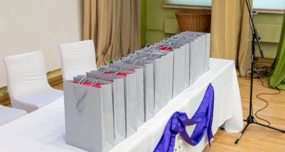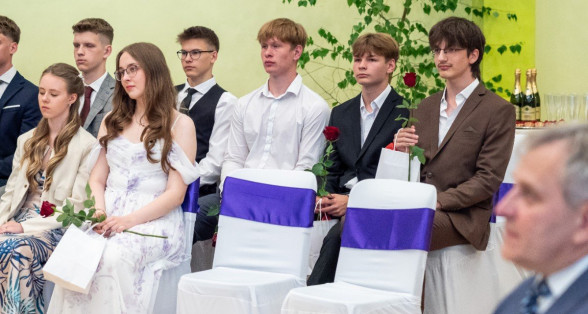 Absolventi ienāk zālē. VIDEO