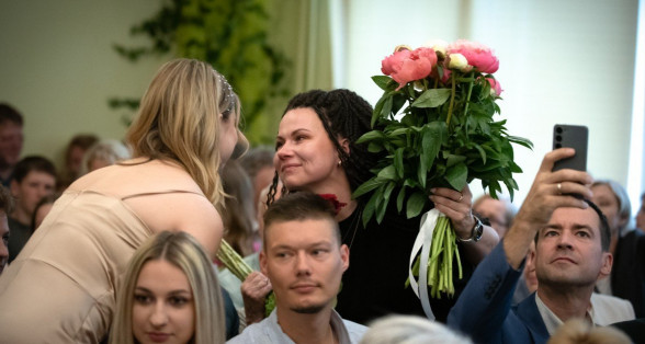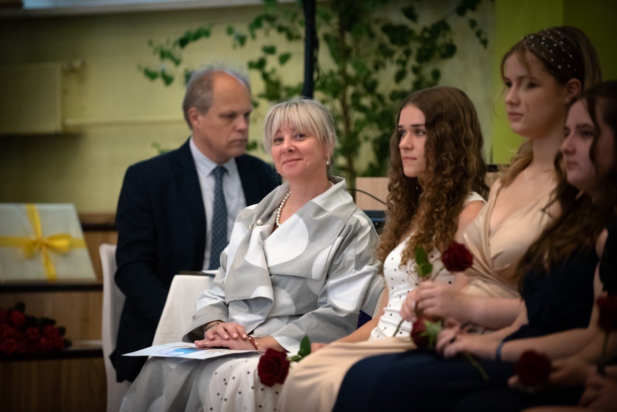 Mīļie absolventi, es jūs sirsnīgi sveicu! Lai arī kur jūs dzīve aizvedīs – atcerieties: dzīvē galvenais nav atzīmes, bet attieksme. Un rezerves lādētājs. To jūs arī skolā iemācījāties."