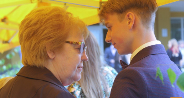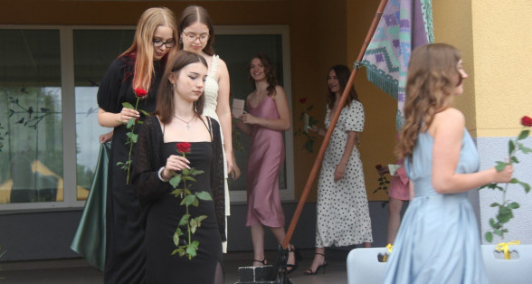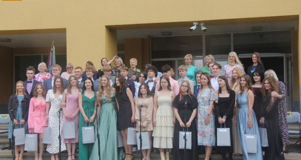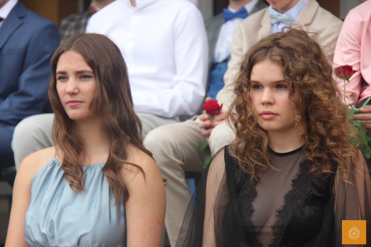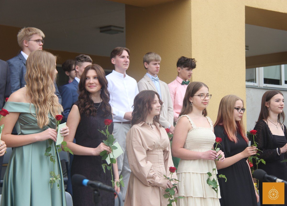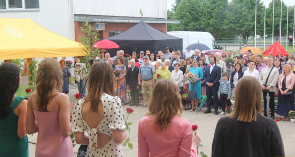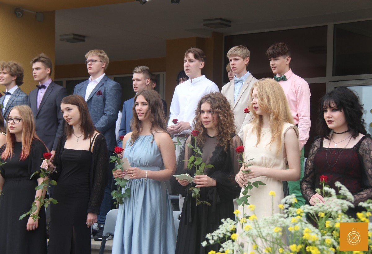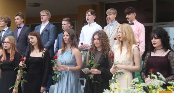 Klātesot skolotājiem, skolas darbiniekiem, vecākiem, kā arī radiem un draugiem, dzirdot Ropažu novada domes priekšsēdētājas vietnieka Aināra Vaičulēna un novada Izglītības, jaunatnes lietu, kultūras un sporta departamenta departamenta vadītājas vietnieces Vijas Tomiņas apsveikumus, smaidīgi un laimīgi, 9.m dziedot izlaižas.