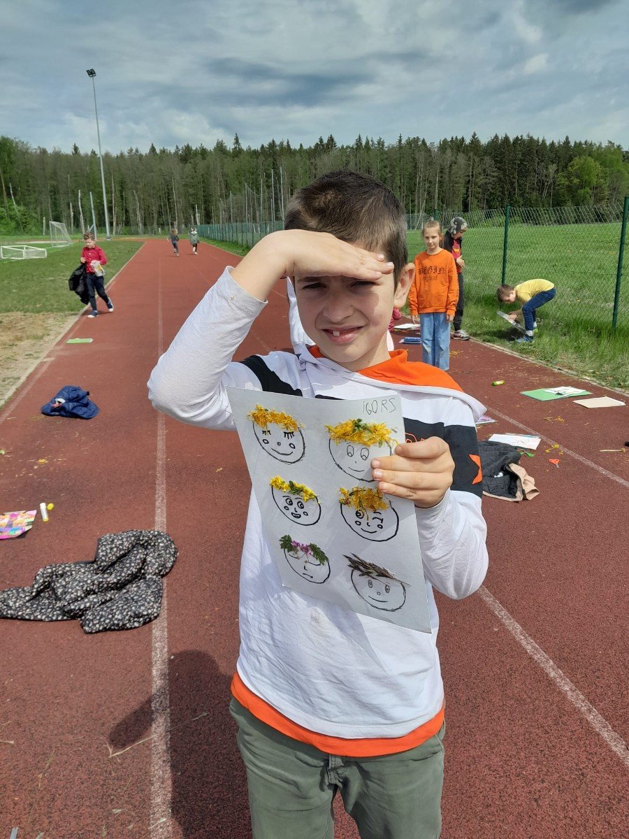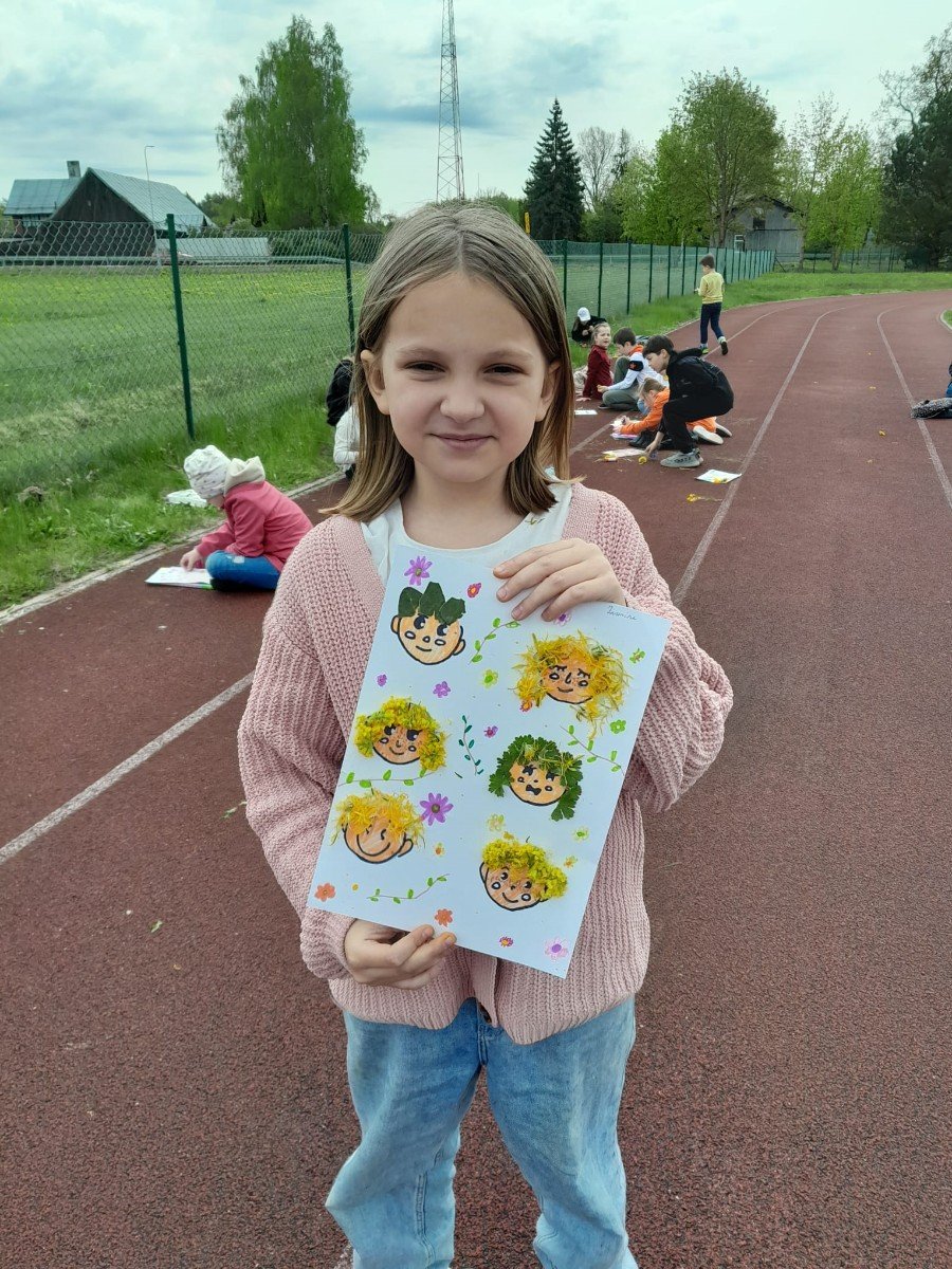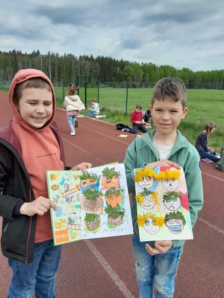 2.c klase, piemēram, devās laukā, lai papildinātu savu mākslas darbu ar dabas materiāliem! Tas bija aizraujoši!