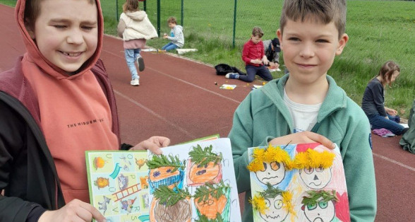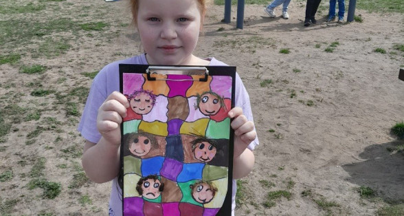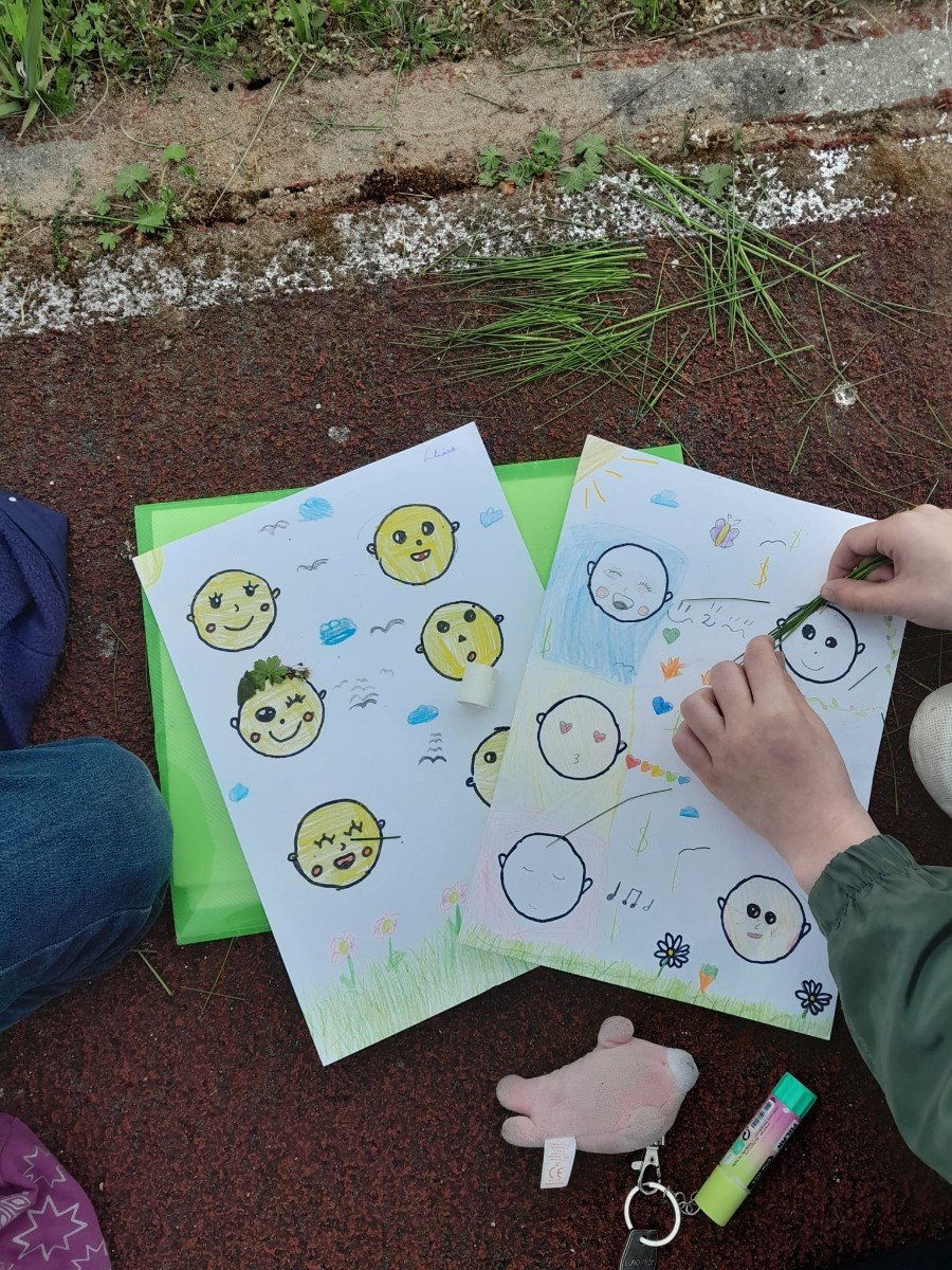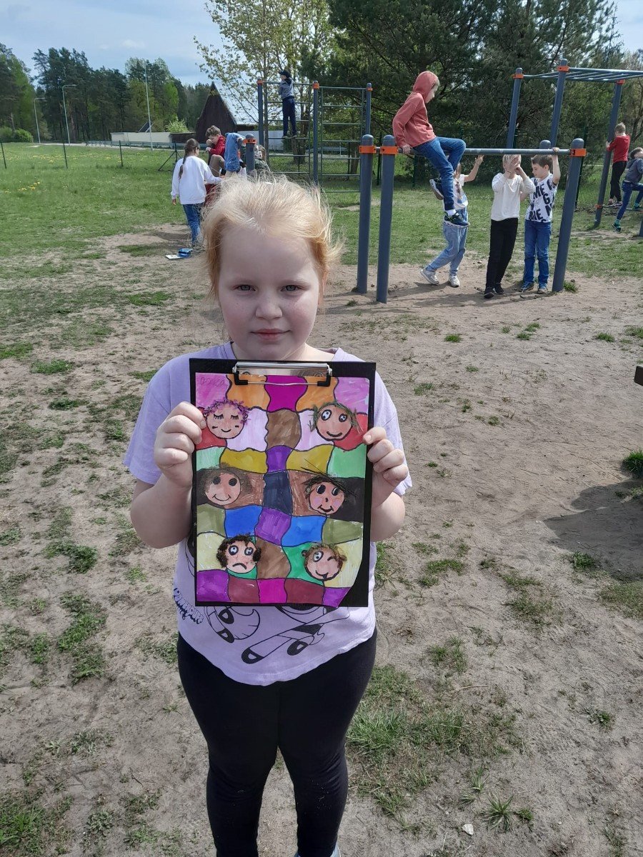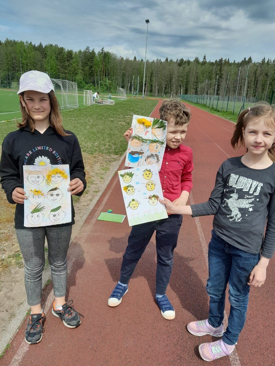 2.c klase, piemēram, devās laukā, lai papildinātu savu mākslas darbu ar dabas materiāliem! Tas bija aizraujoši!
