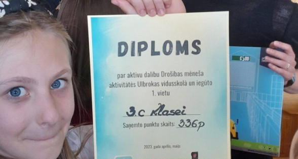 No 4. līdz 19.maijam Ulbrokas vidusskolas 1.-9.klases piedalījās CSDD projektā "Drošība ceļu satiksmē".