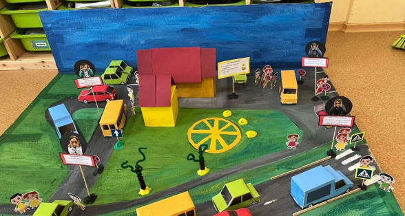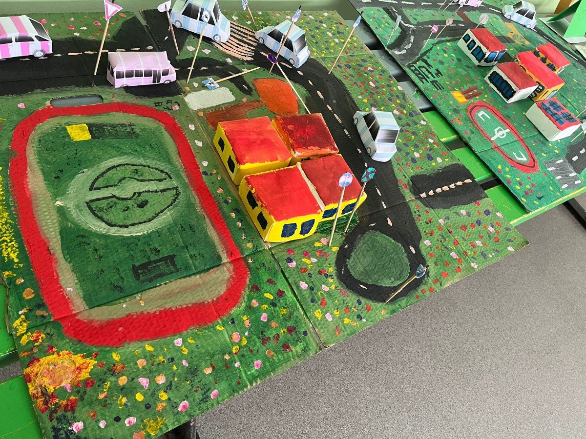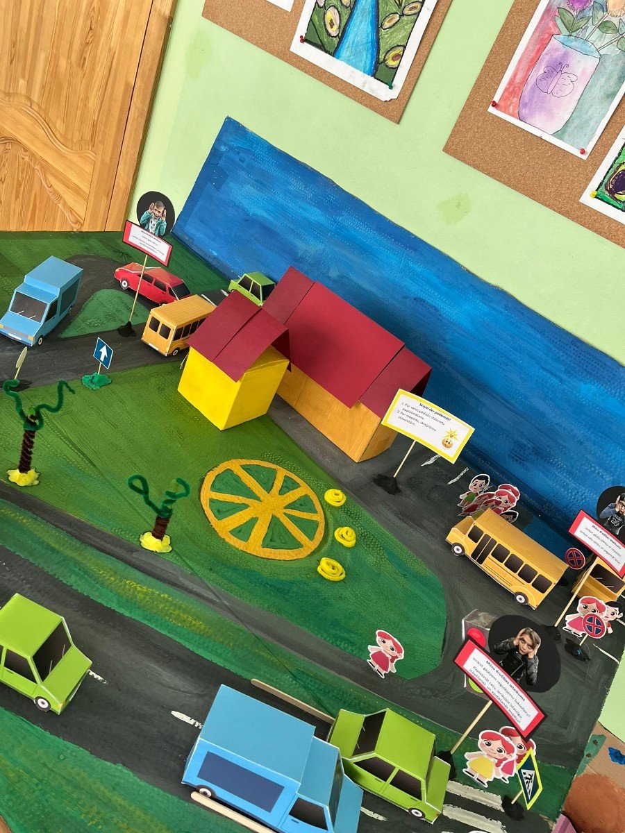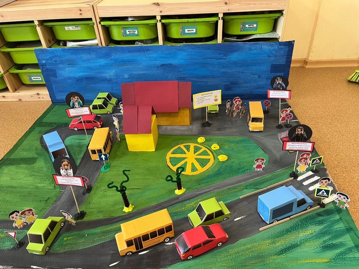 “Drošības mēnesis” Ulbrokas vidusskolā ietvēra gan jauno velosipēdistu praktiskās braukšanas sacensības, gan interaktīvās spēles “Domā! Prognozē! Rīkojies!” izspēli klasē, gan Ulbrokas vidusskolas un tuvākās apkārtnes maketa izveidi, bīstamo vietu kartēšanu.
