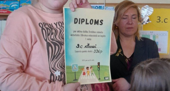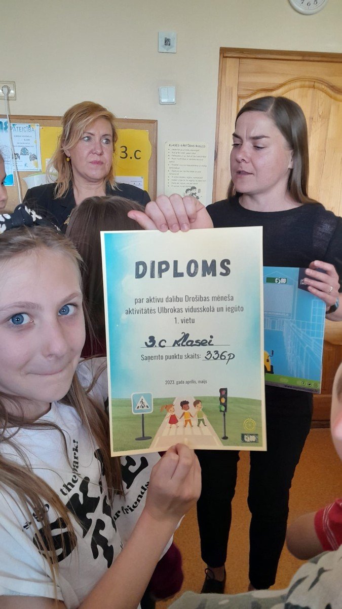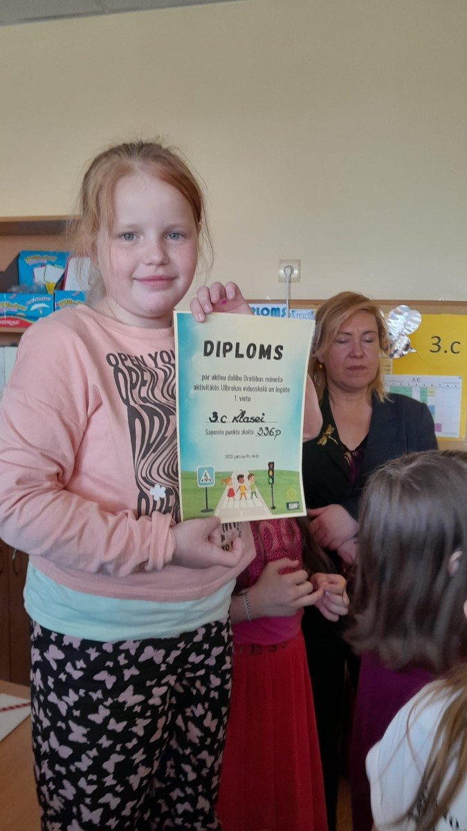 Sveicam 3.C KLASI, KURA IEGUVA 1.VIETU Ulbrokas vidusskolas "DROŠĪBAS MĒNESĪ".