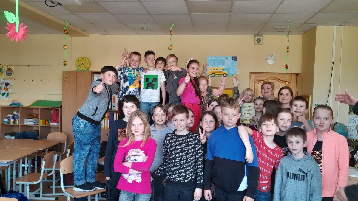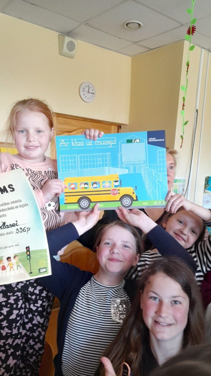 Vislabāk "Drošības mēnesī" veicās 3.c klasei! 18.maijā skolā bija ieradusies CSDD izglītības projektu vadītāja Guna Zvīgule, lai personiski apskatītu maketu izstādi un uzvarētājklasei pasniegtu lielo balvu – bezmaksas Motormuzeja apmeklējumu klasei.