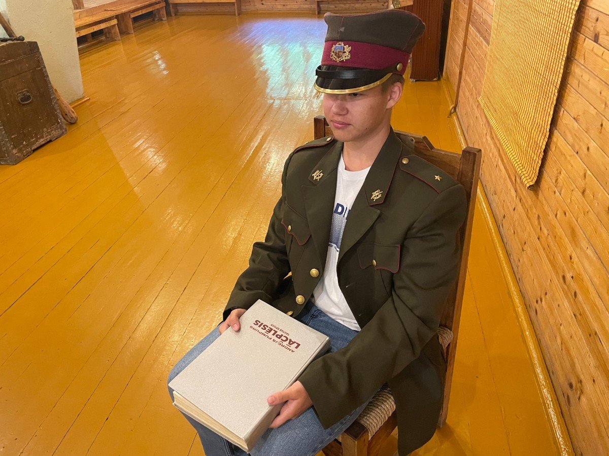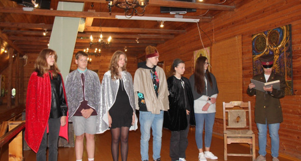 Pēc almanaha prezentācijas jaunieši ļāvās A.Pumpura muzeja aktivitātei un izspēlēja varoņeposu. Neizpalika arī Lāčplēša cīņa ar Melno bruņinieku.