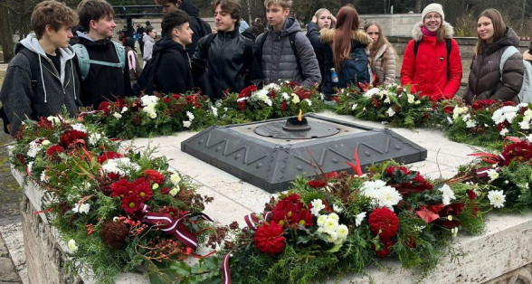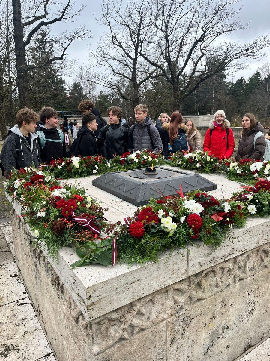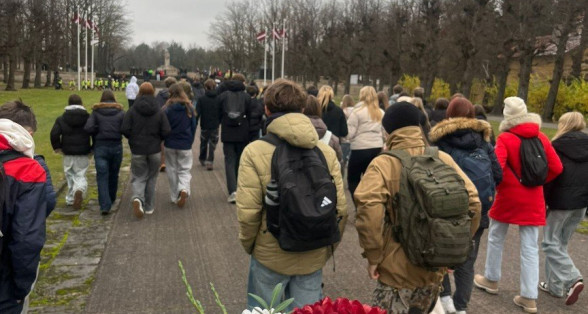 Pie skolas agrā rīta iedegtas sveces Latvijas kontūrā, klašu pārstāvji kopā ar skolēnu pašpārvaldes dalībniekiem piedalījās pasākumā pie Lāčplēša ordeņa kavalieriem veltītā akmens, 9.klases devās uz Brāļu kapiem, bet 10.klašu skolēni devās uz Ulbrokas kapiem nolikt ziedus K. Vītiņa piemiņai.