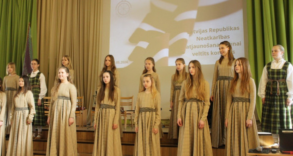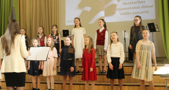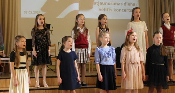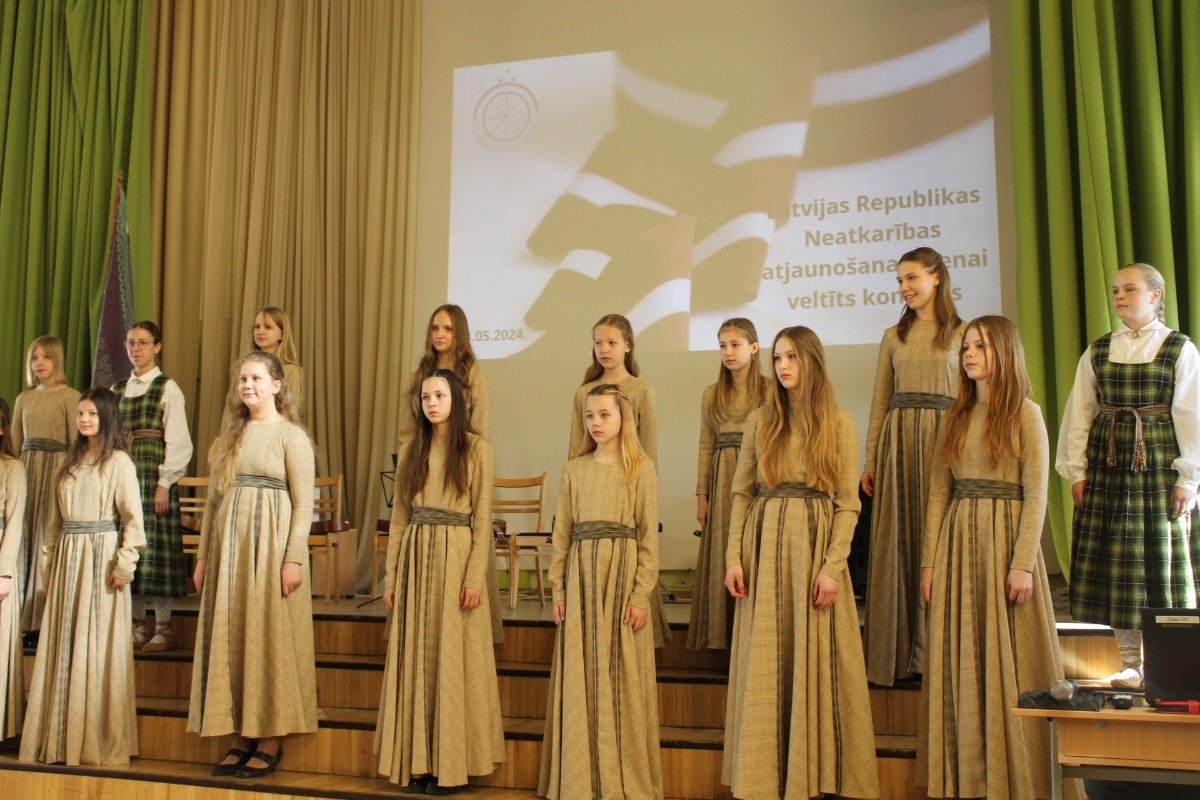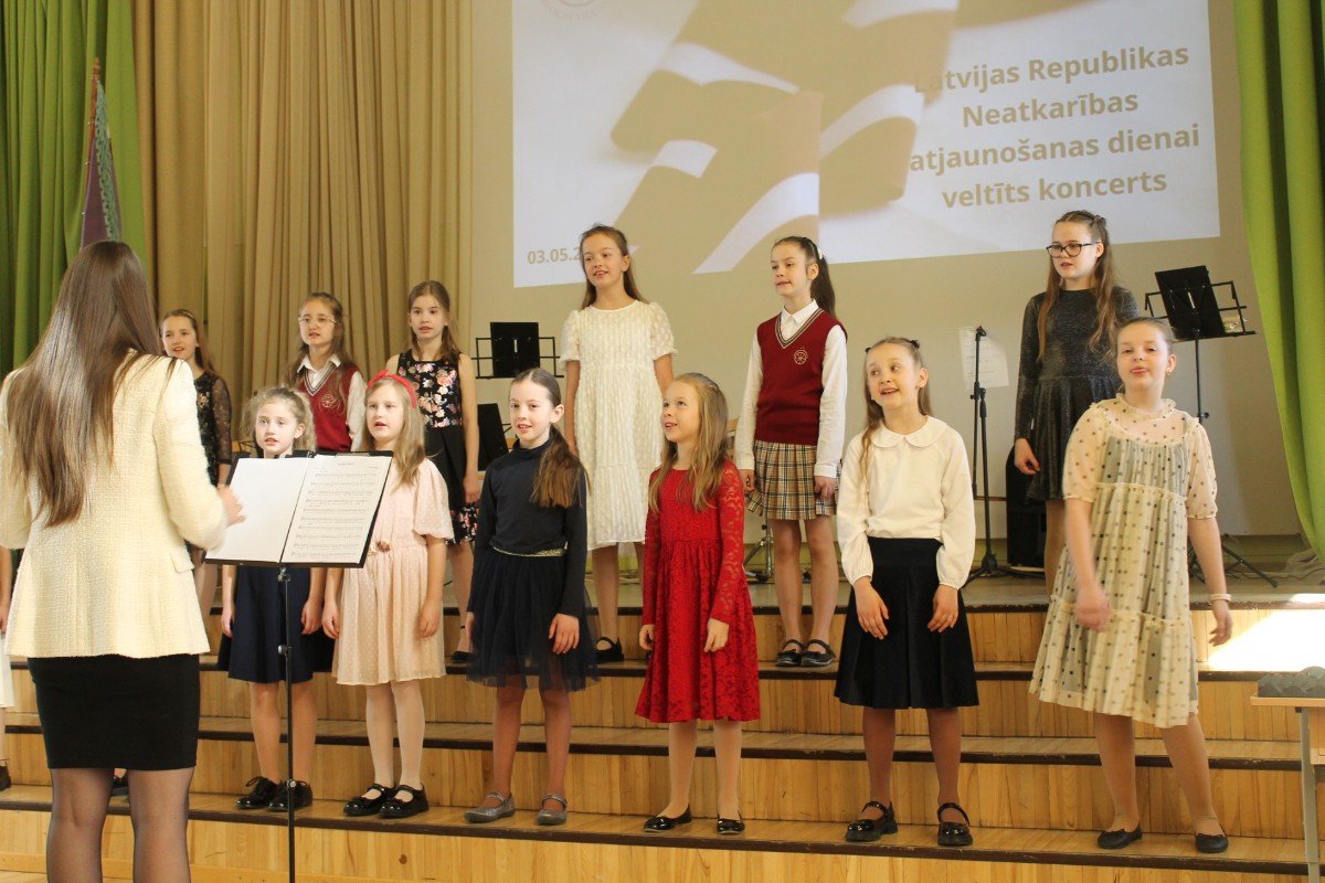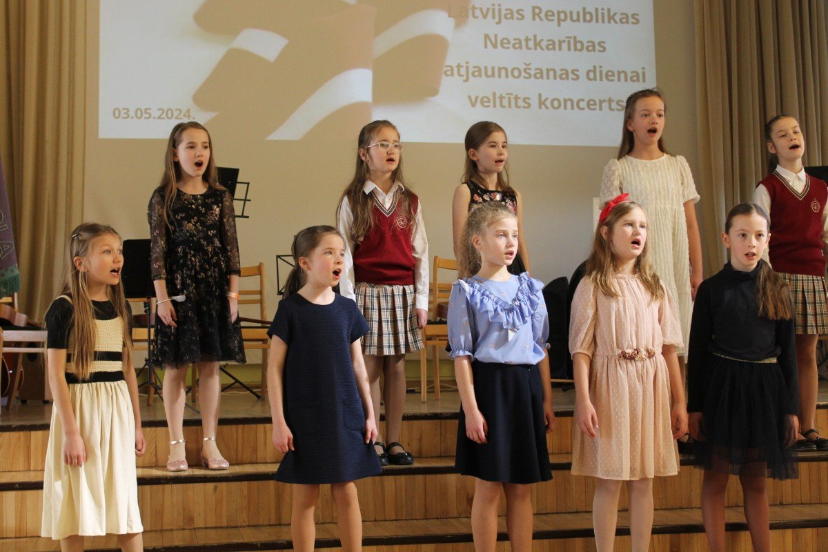 2.-4.klašu kora dziedātājas priecē klausītājus ar sirsnīgo dziedāšanu Latvijas Republikas Neatkarības atjaunošanas dienai veltītajā koncertā. Paldies skolotājai Sabīne Balode