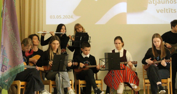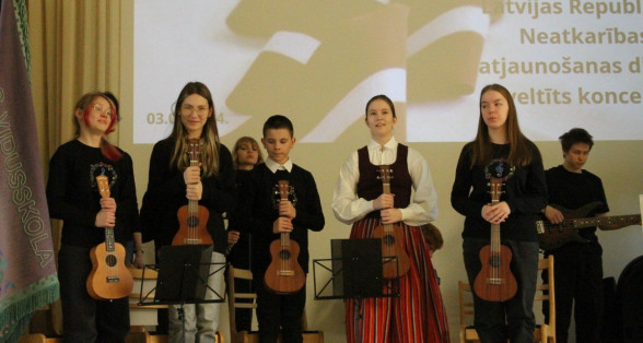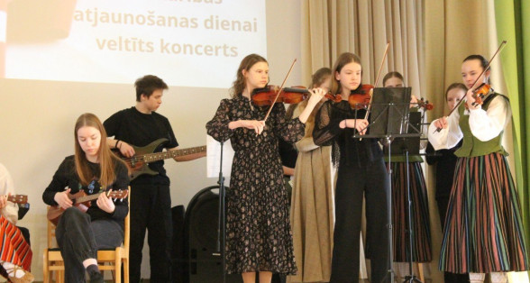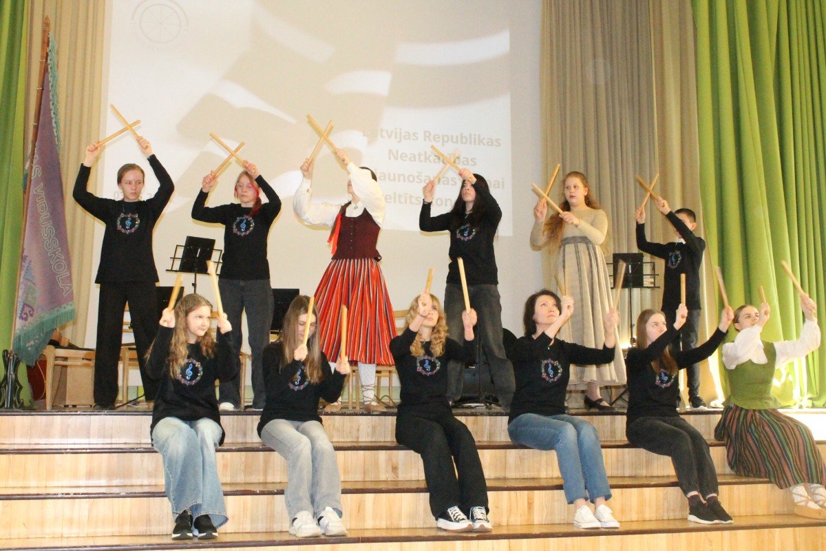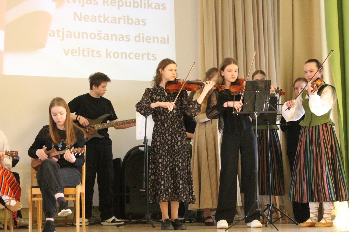 Eksperimentāli instrumentālais ansamblis atklāj koncertu, kas veltīts Latvijas Republikas Neatkarības atjaunošanas dienai. Paldies skolotājai Lauma Vicinska-Karakona