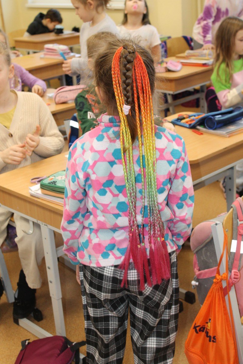 Šodien skolā izskan skolēnu pašpārvaldes organizētā krāsu nedēļa. Šodien raibumiņi pārvietojas pa skolu un acīs ņirb dažādas krāsas, jo šodien ir raibā diena. Stājoties pretī ārā valošajam meln-balti-pelēkajam, skolā uzvaru svin krāsas!