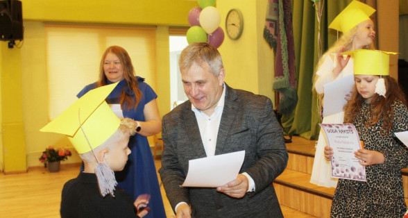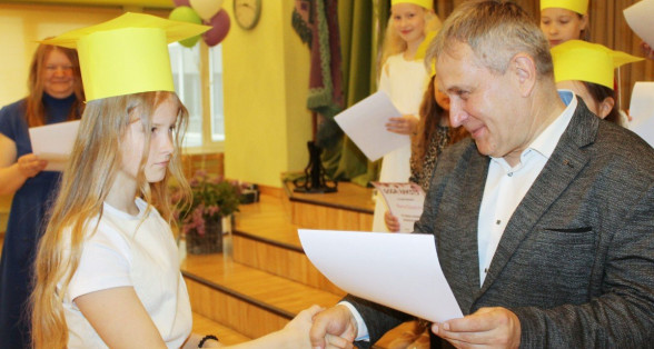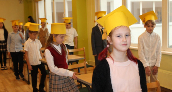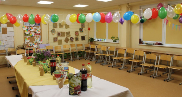 Skaisti izrotāta zāle, baloni, sarūpēti pārsteigumi... Viss priekš 3.klašu skolēniem.