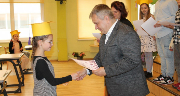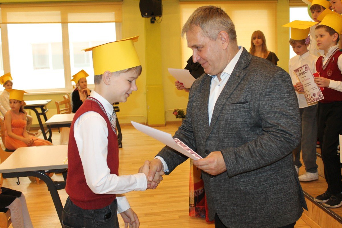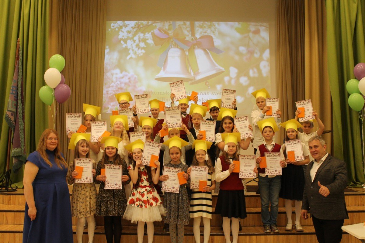 3.a klase uz svētkiem atnāca kopā ar savu klases audzinātāju Ritu Jaņinu, 3.b - ar savu klases audzinātāju Elitu Ermansoni, 3.c ar savu skolotāju Antru Vilmani, bet 3.d kopā ar savu skolotāju - Elīnu Sīli. Visi priecīgi, skolēni ar dzeltenām cepurēm galvā. Pēc goda raksta saņemšanas viņi ļaujas krāsainiem sapņiem un burbuļiem.