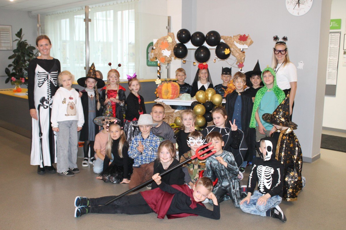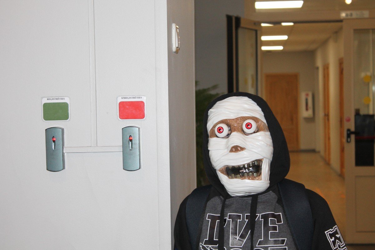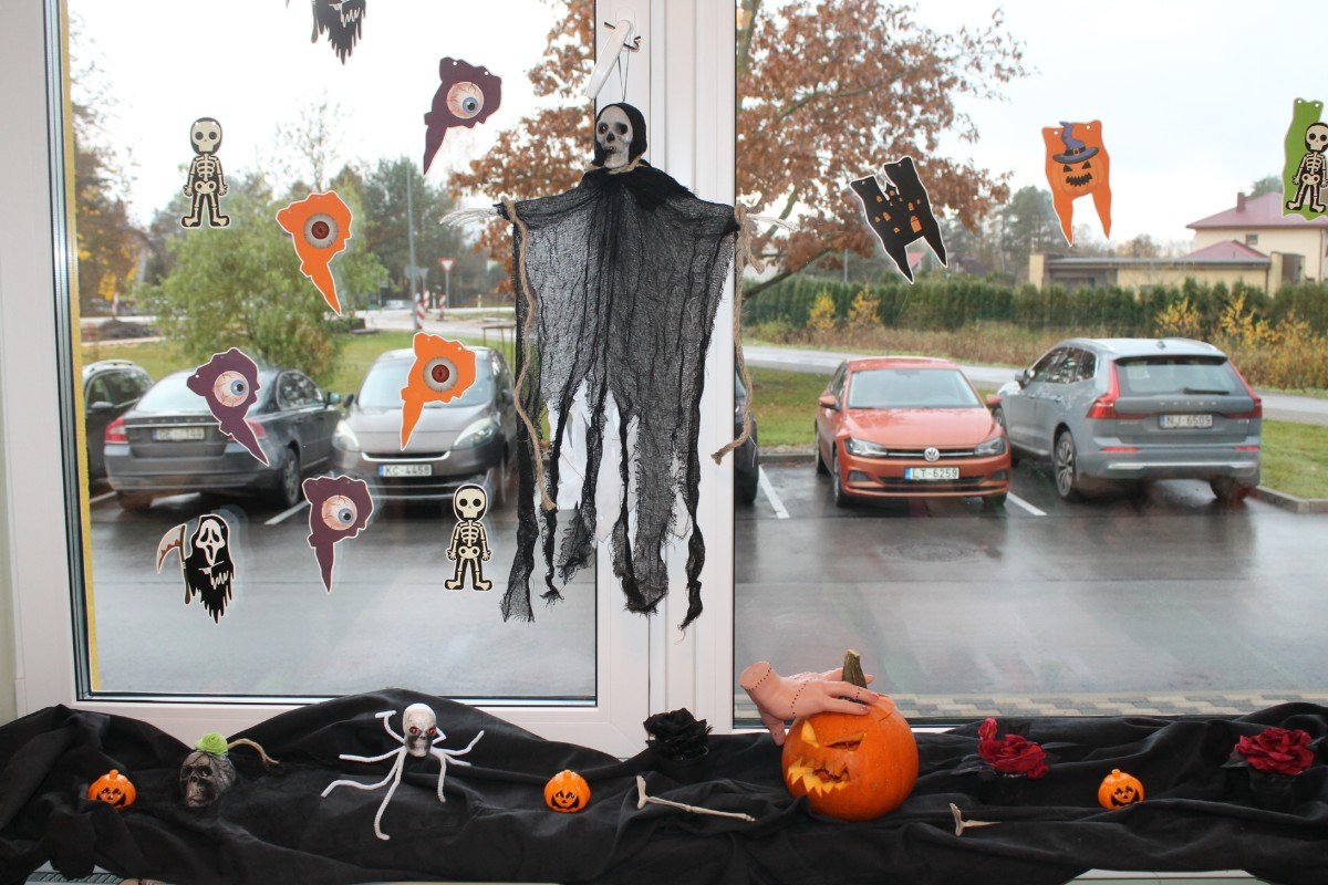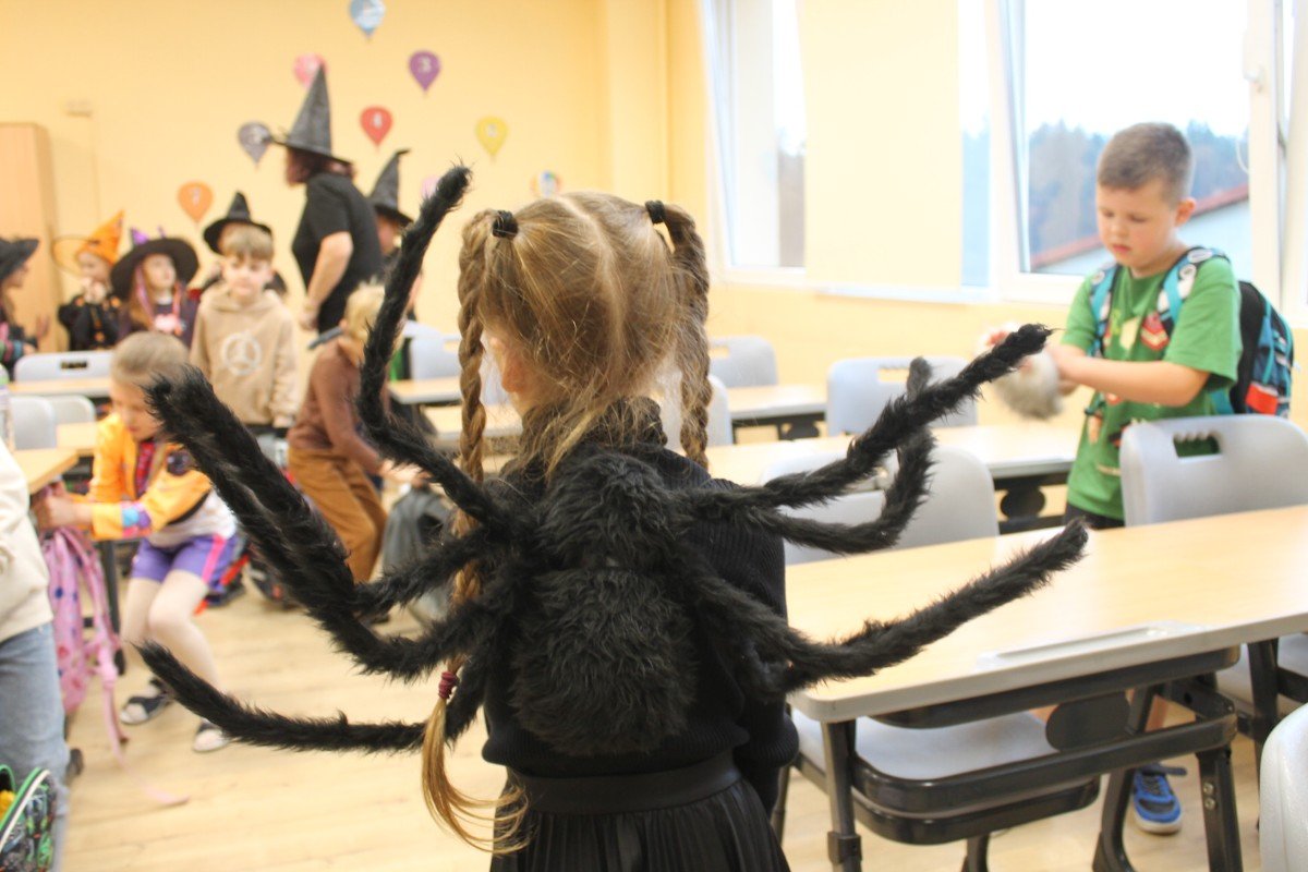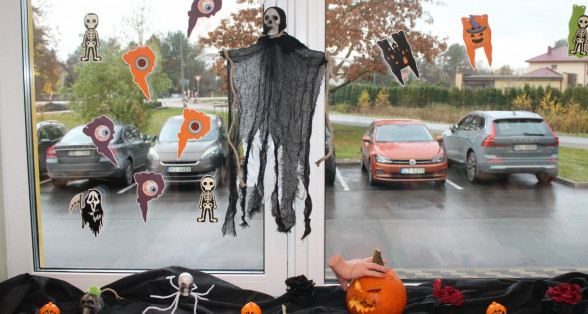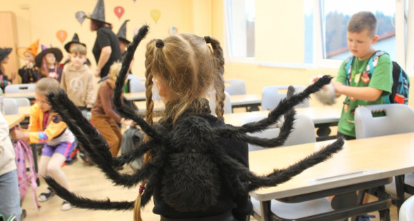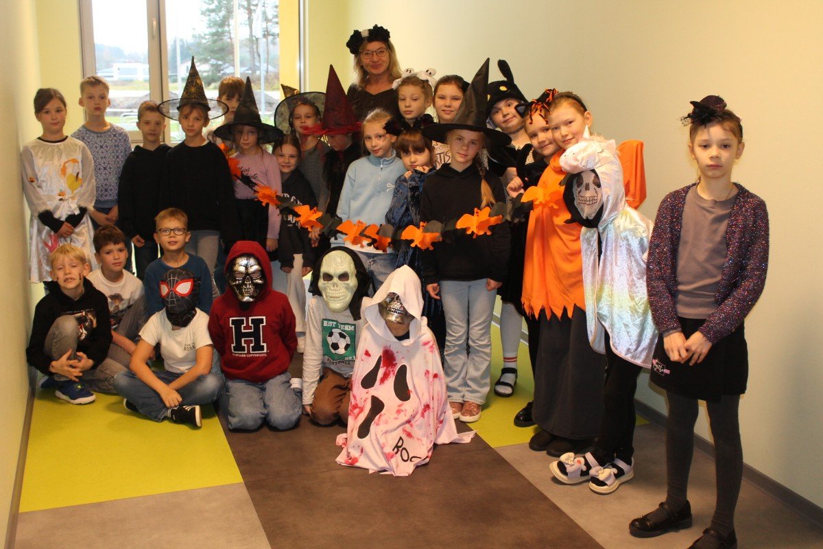 Arī abas mūsu skolas ēkas ir sapostas - daudzviet karājas zirnekļu tīkli, ir izgrebti ķirbji un bērni, un skolotāji ir saģērbušies tā, ka gribas teikt: "Tā nu ir īsta spokošanās!"