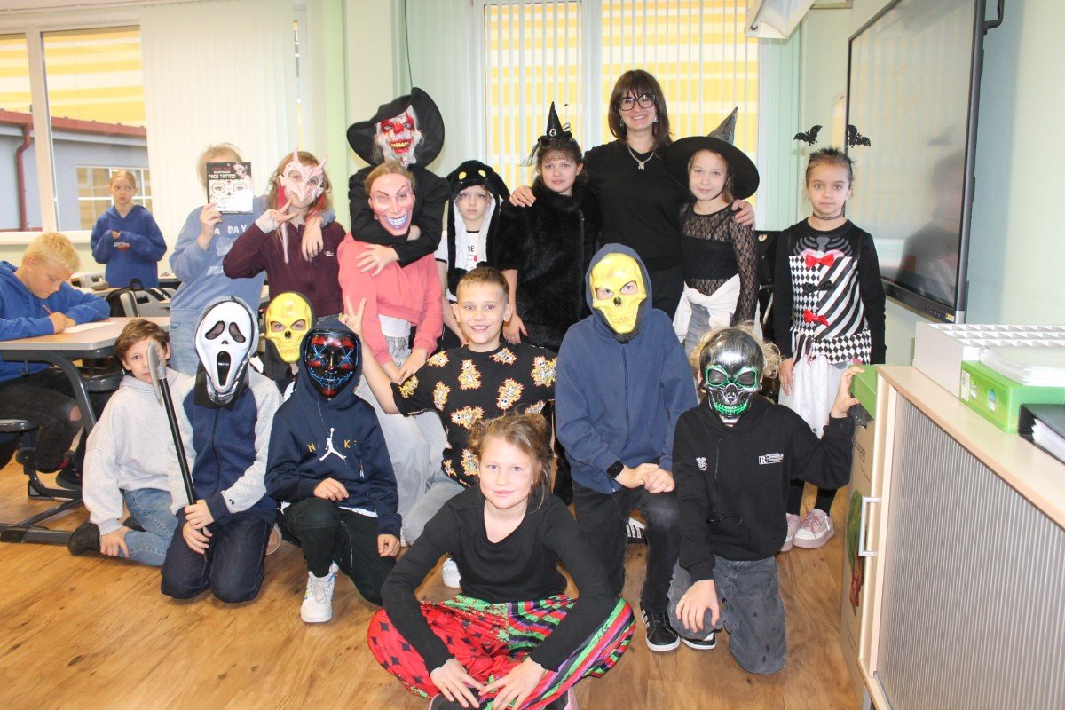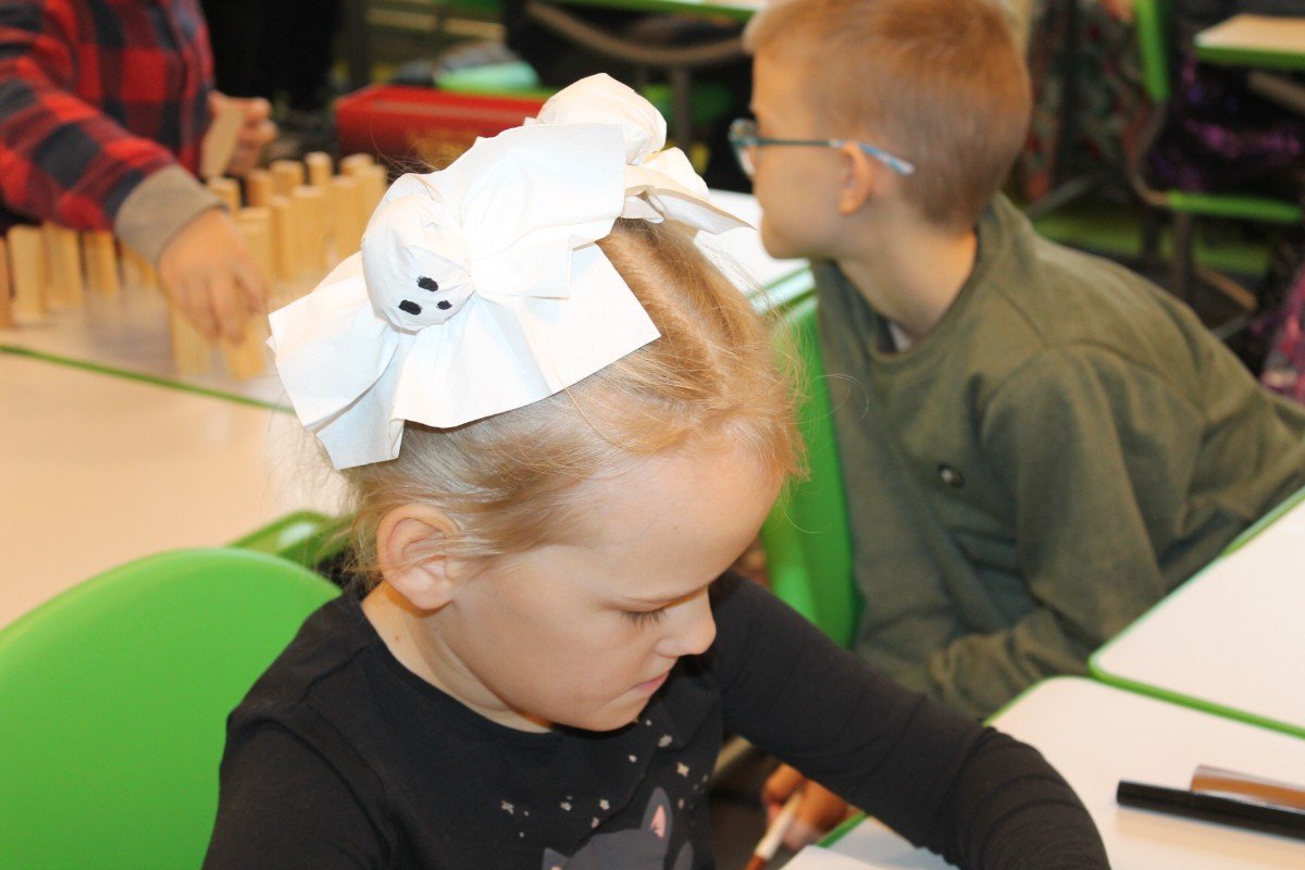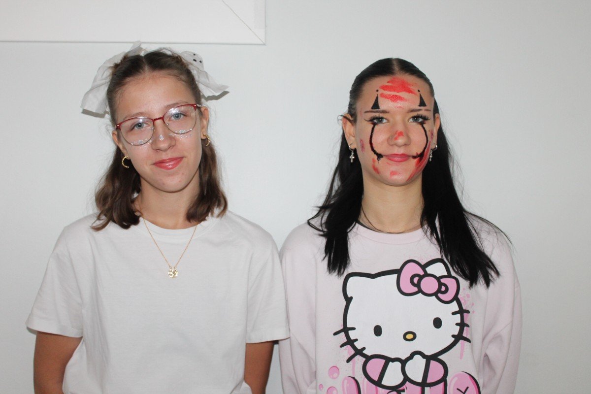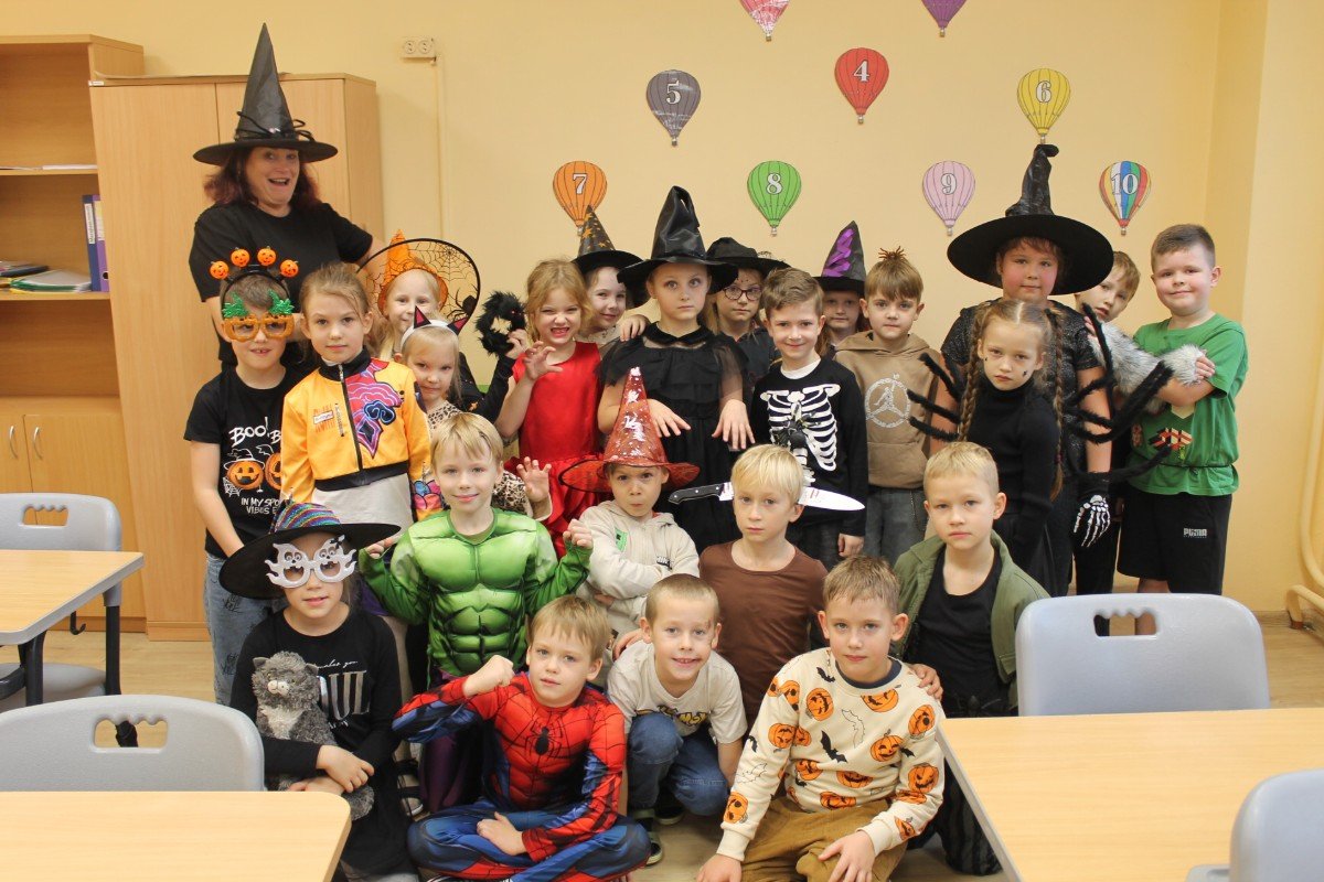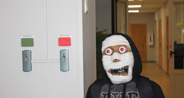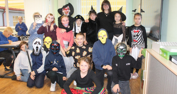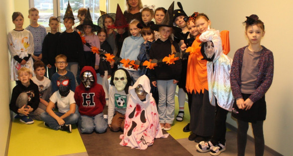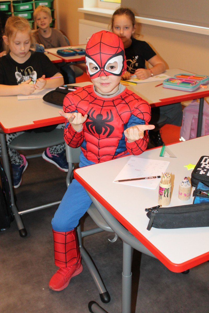 Arī abas mūsu skolas ēkas ir sapostas - daudzviet karājas zirnekļu tīkli, ir izgrebti ķirbji un bērni, un skolotāji ir saģērbušies tā, ka gribas teikt: "Tā nu ir īsta spokošanās!"