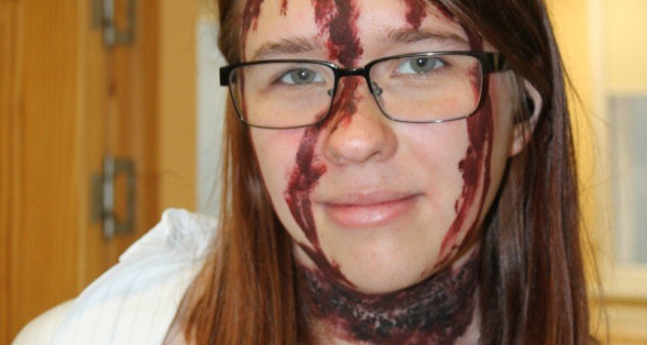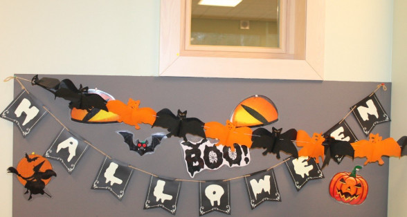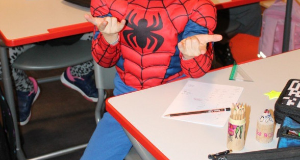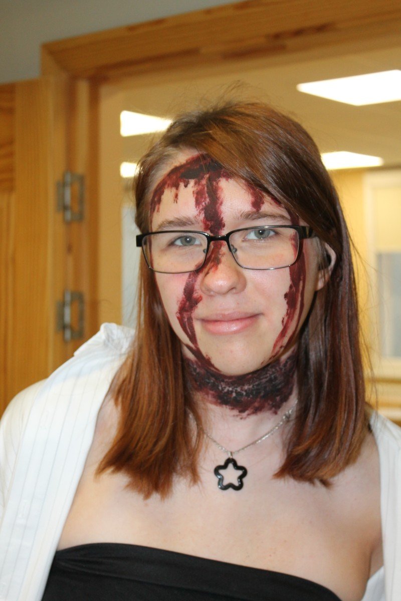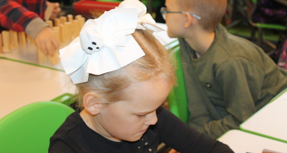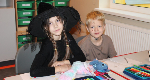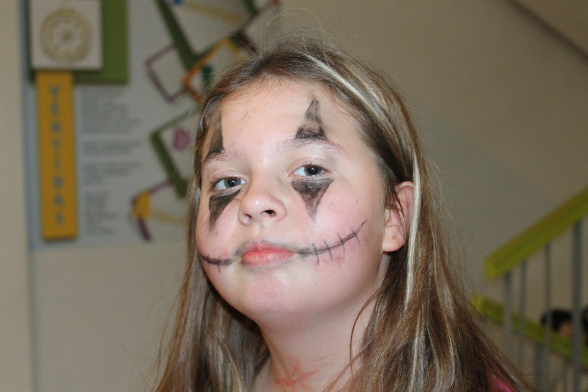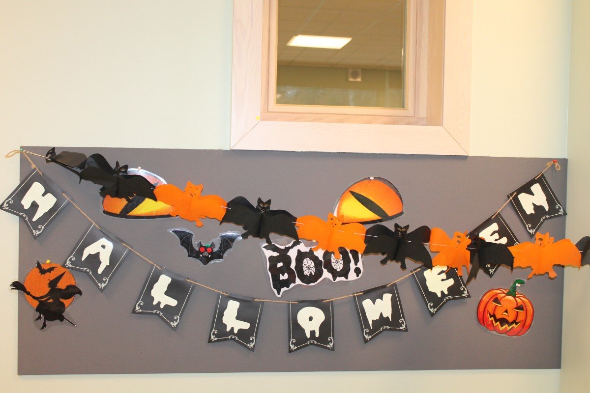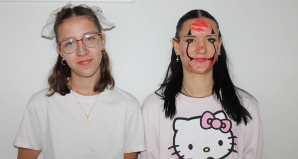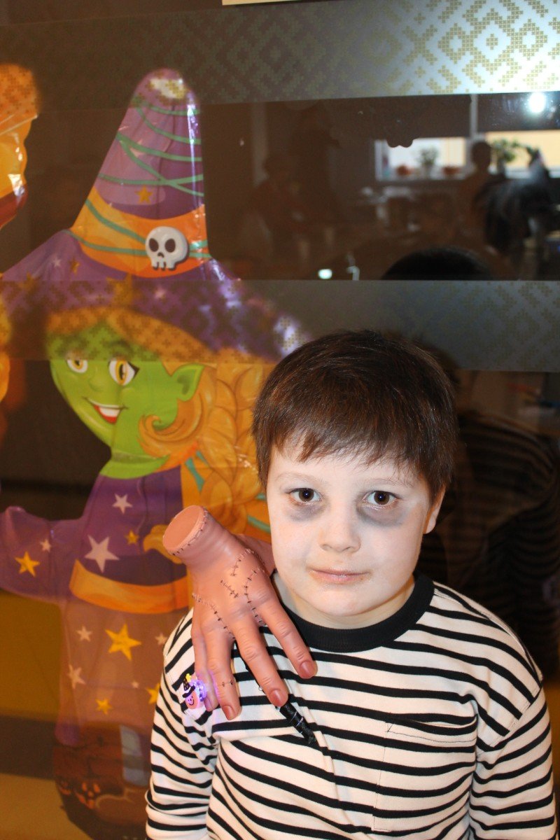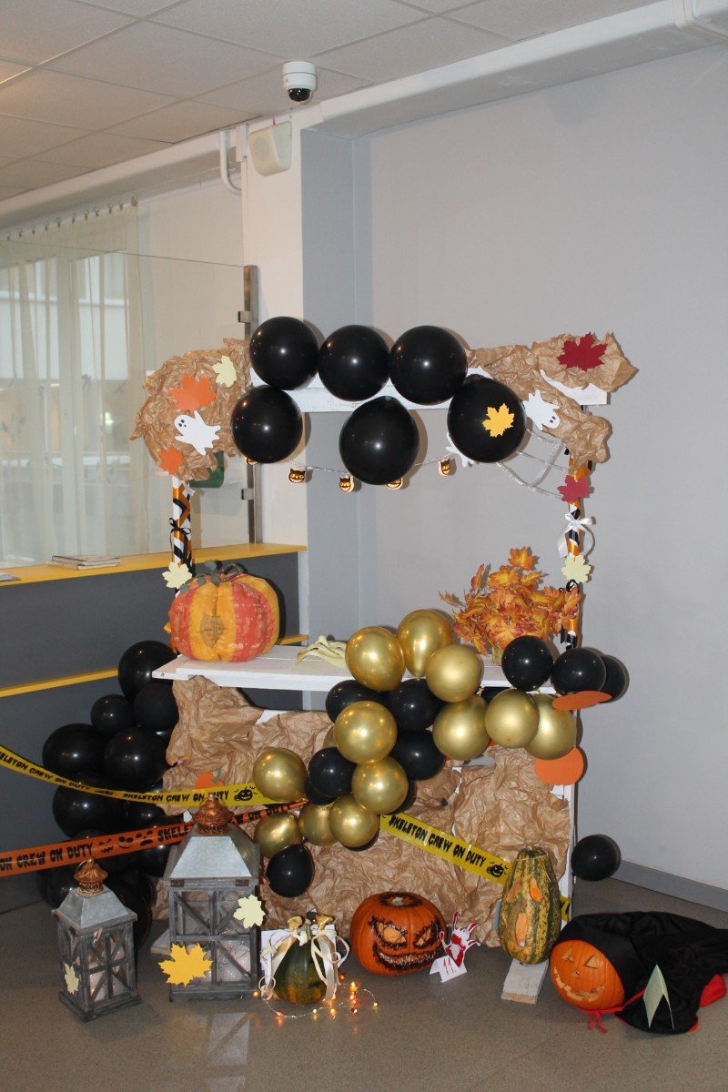 Arī abas mūsu skolas ēkas ir sapostas - daudzviet karājas zirnekļu tīkli, ir izgrebti ķirbji un bērni, un skolotāji ir saģērbušies tā, ka gribas teikt: "Tā nu ir īsta spokošanās!"