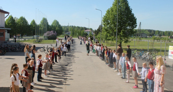Izlaidumu klašu skolēni sadarbojas ar visjaunākajiem skolas skolēniem divas reizes gadā - 1.septembrī izlaiduma klašu skolēni ieved mazos skolā, savukārt mazie vēl veiksmi lielajiem Zvana svētkos. Šogad mūsu skolas topošais pirmklasnieks Emīls Upītis lielajiem atgādina to laiku, kad viņi vēl bija mazi.