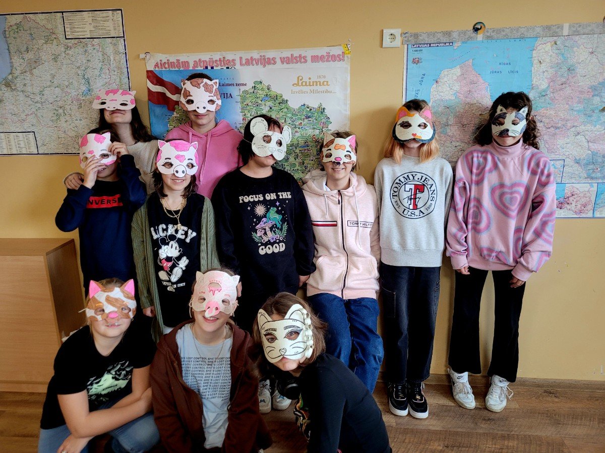 Šonedēļ pirms Mārtiņa dienas 5.b, 5.d un 6.b klases literatūras stundās pārrunāja, kas ir Mārtiņdiena, tās tradīcijas, ticējumus, lasīja tautasdziesmas un veidoja dzīvnieku maskas, jo arī masku gājieni ir viena no Mārtiņdienas tradīcijām.