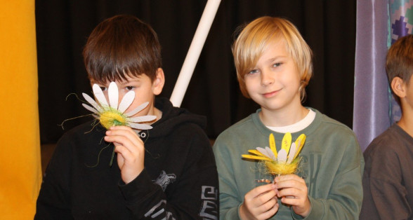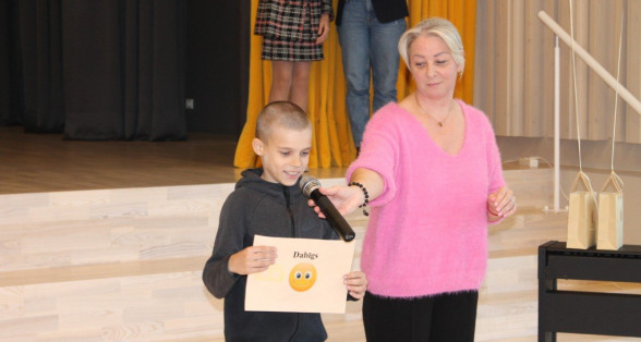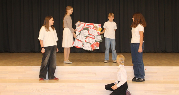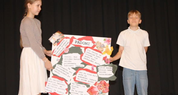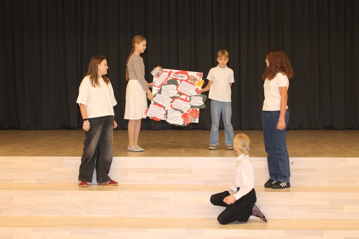 Svinot 4.klašu piederības svētkus pamatskolai, 5.c klase bija sagatvojusi 4.c klasei mīklas par skolu.