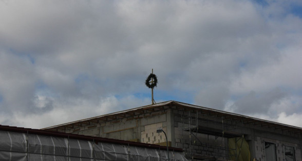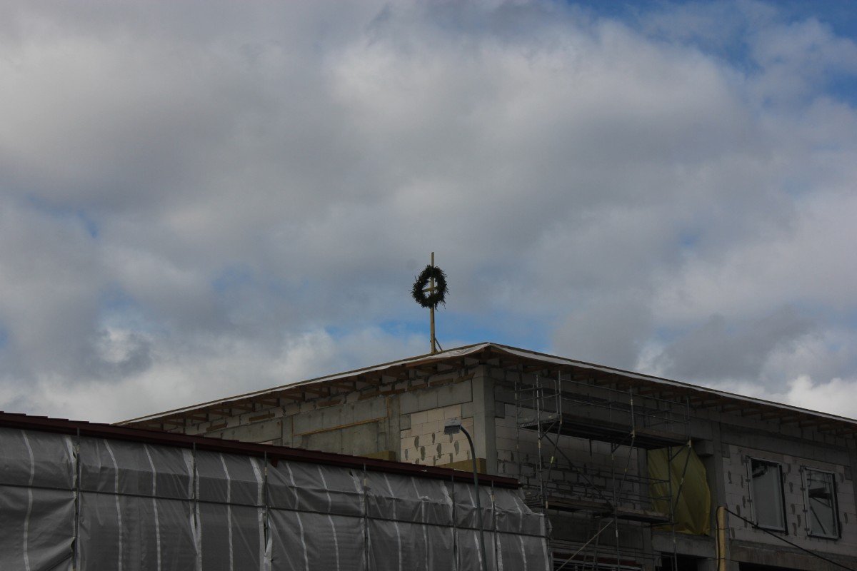 Ropažu novada pašvaldības domes priekšsēdētāja Vita Paulāne pateicās būvniekiem par līdz šim izdarīto un vēlēja labu veiksmi darbu turpināšanai, lai rudenī bērni mācības varētu uzsākt jaunajās telpās, Ulbrokas vidusskolas direktors Normunds Balabka pievienojās laba vēlējumam.