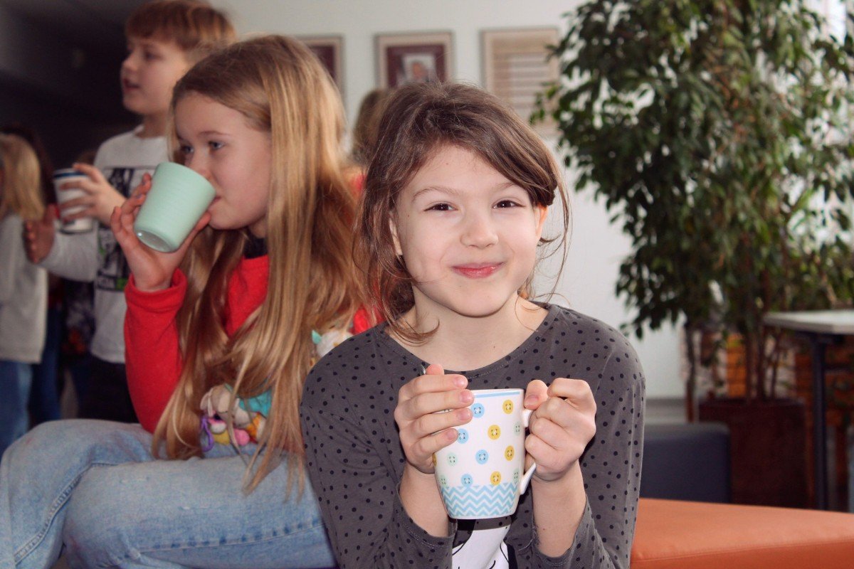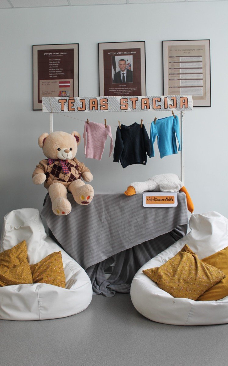 Šodien 2.stāva gaitenis smaržo pēc zāļu tējām. Nāk skolēni ar savām krūzēm, bauda tējas un, silti apģērbti, izbauda.