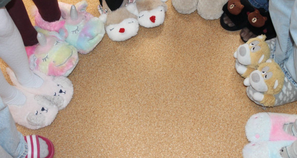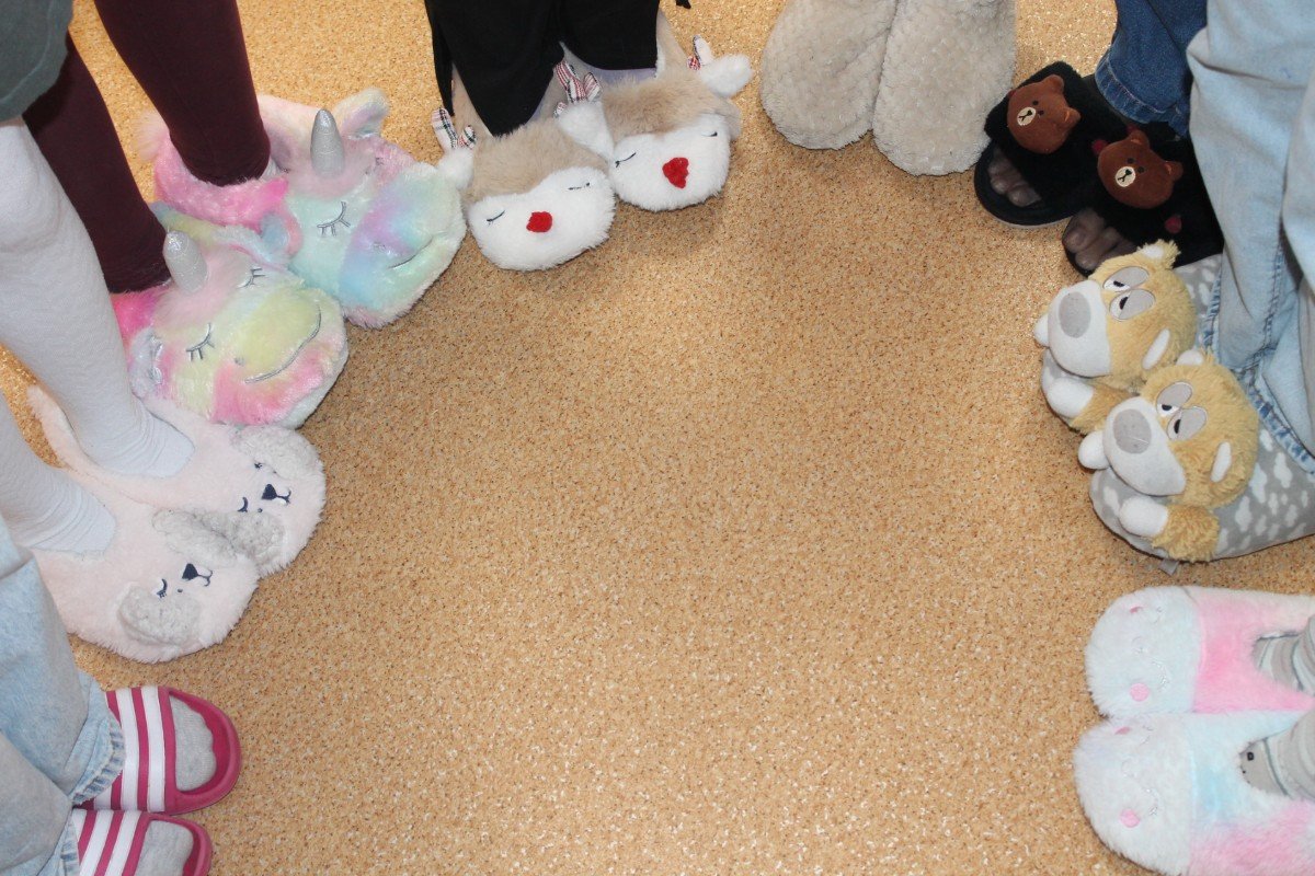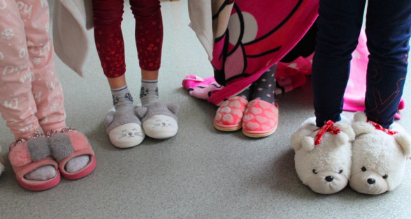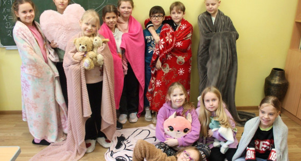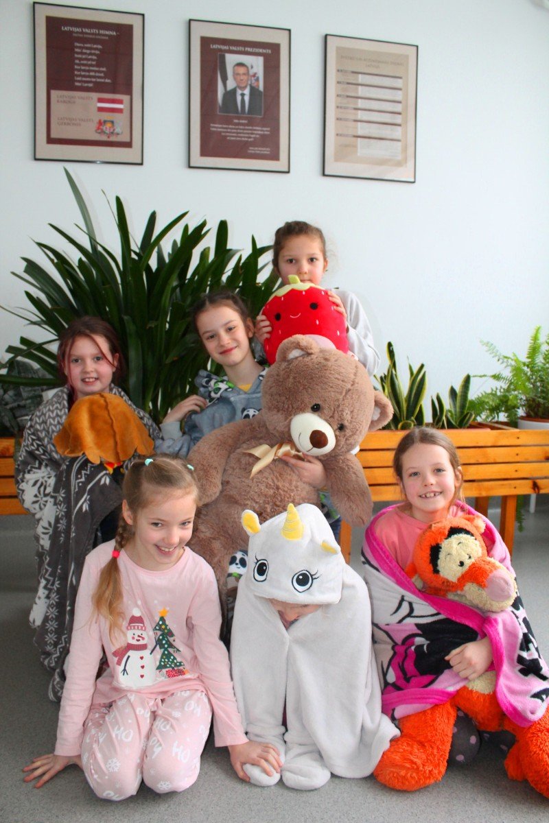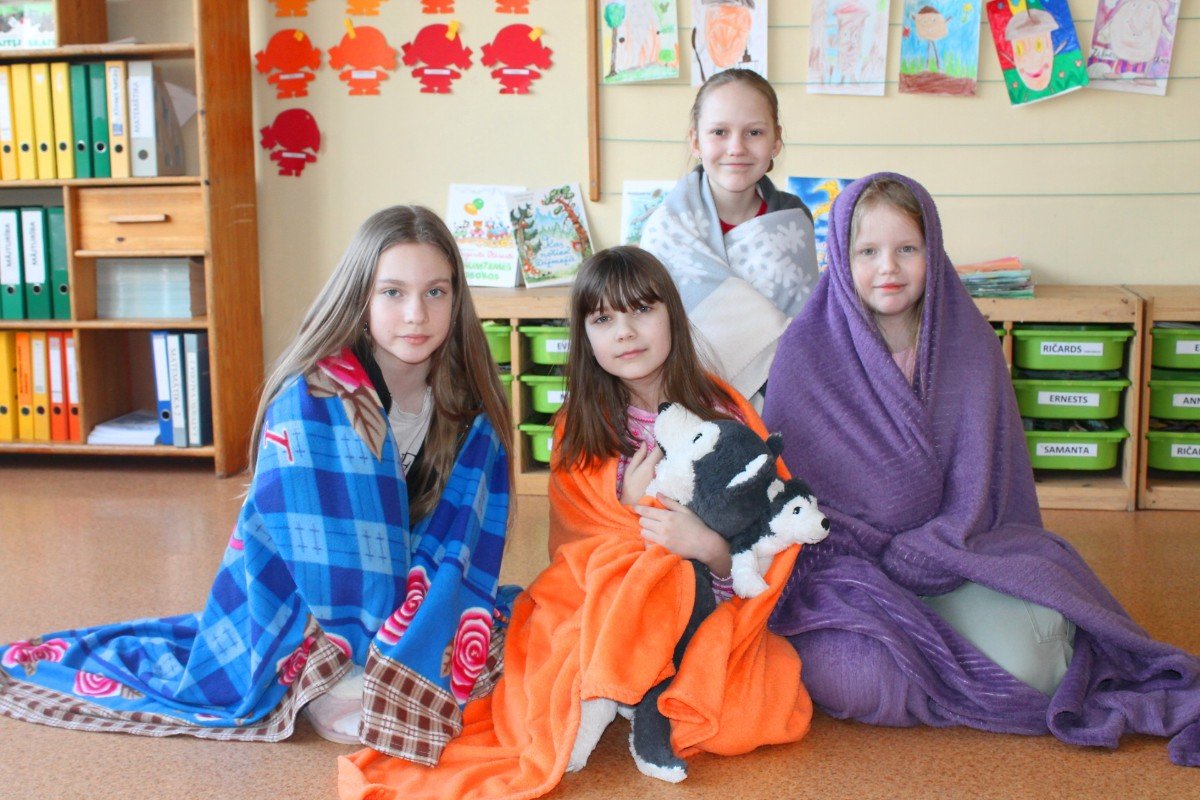 Šodien skolā patiesa māju sajūta: bērni čībās un plediņos, uz galdiem blakus grāmatām un burtnīcām - kāda mīļmantiņa. Silto džemperu nedēļa izskan.
