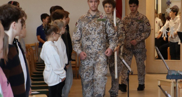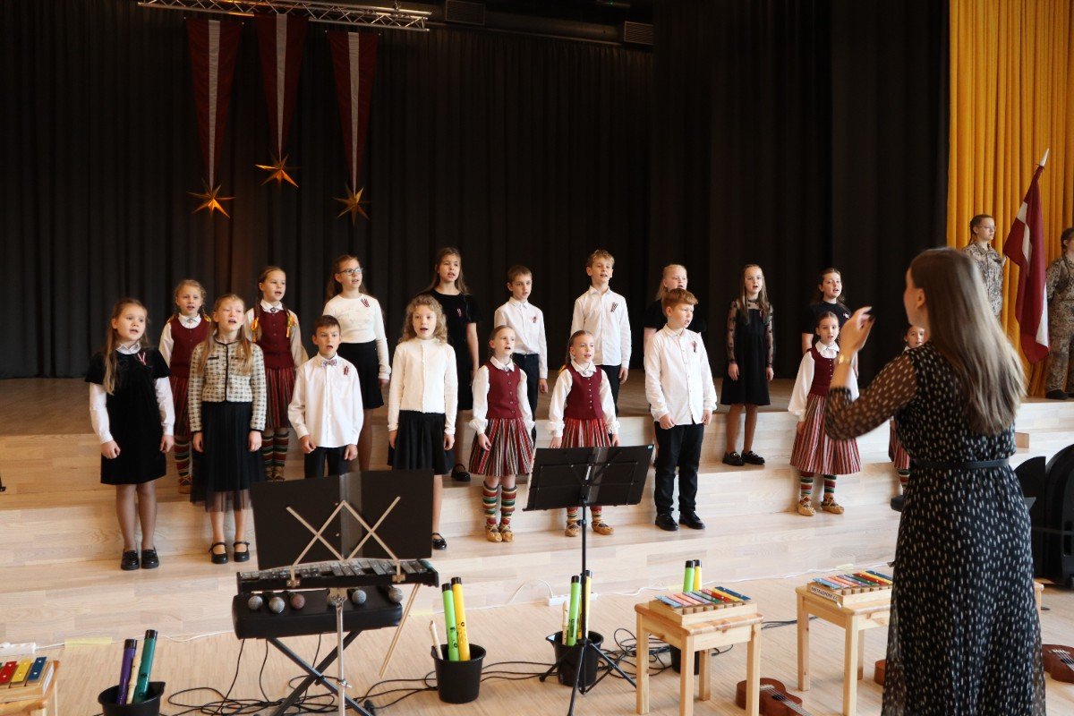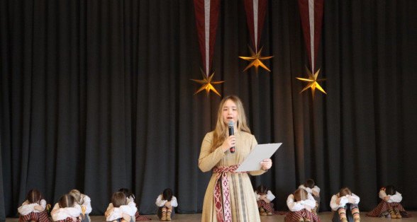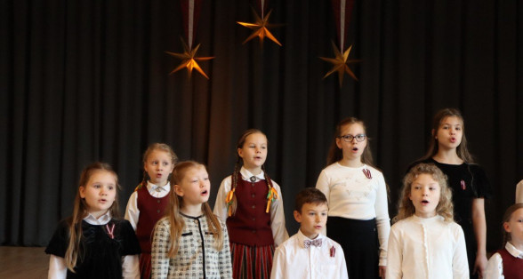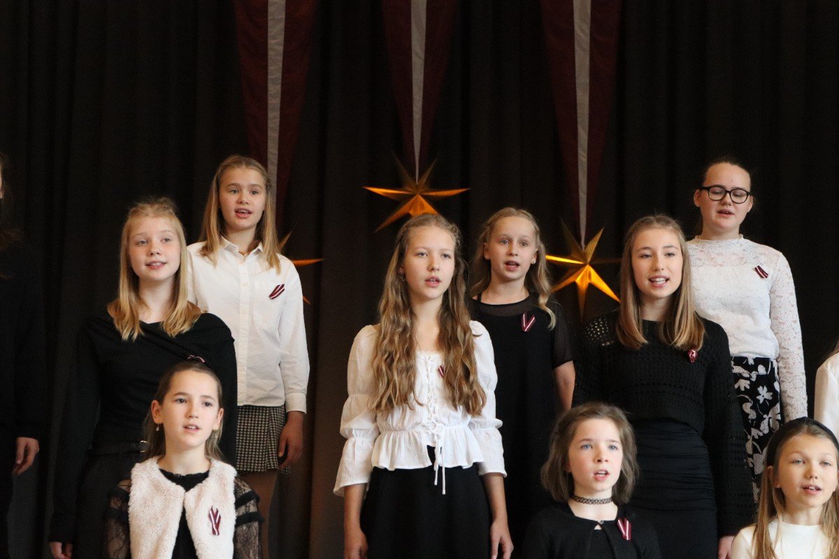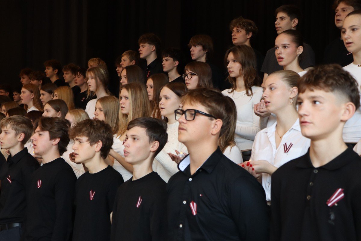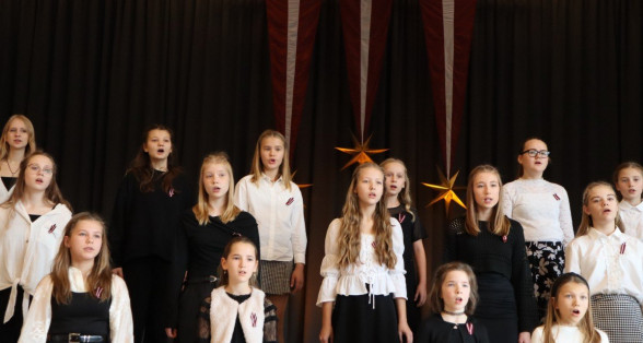 "Es esmu Latvija - sirds, kas pukst brīvībā. Es esmu - vēju un dziesmu valsts, kur katrs akmens glabā stāstu, kur egļu smarža sajaucas ar jūras sāli. Es piedzimu pirms 107 gadiem - trausla, samīdīta, bet pārliecināta, ka celšos brīva un lepna," ar šādiem vārdiem šodien sākās Valsts svētku koncerts "Sirdī Latvija". Jau par tradīciju kļuvis tas, ka apvienotais 9.klašu koris izpilda kādu dziesmu. Šogad - "Zibsnī zvaigznes aiz Daugavas".