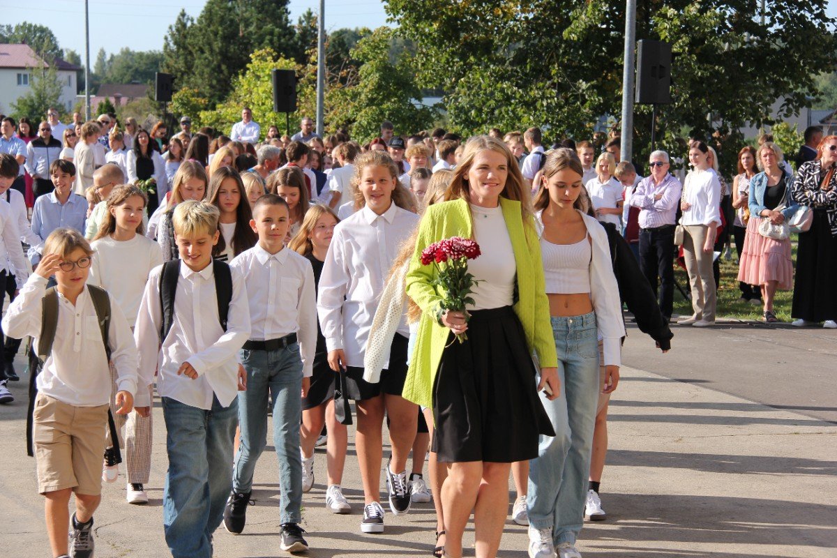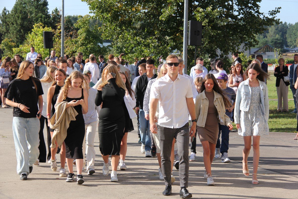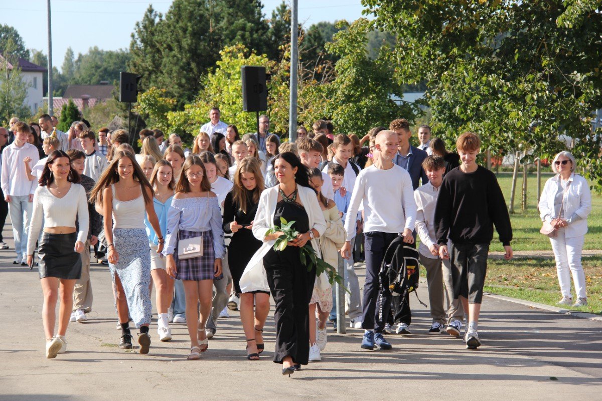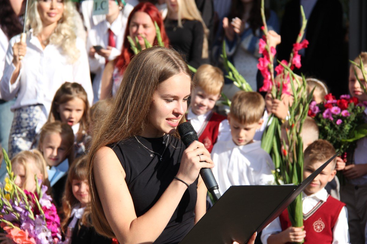 Šogad Zinību diena "iekritusi" 2.septembrī, bet tas noteikti nemaina atkalredzēšanās prieku un svētku sajūtu. Pievēršot uzmanību skolas vērtībām: Laikam, Cilvēkam, Izaugsmei, Darbam un Atbildībai, skolēnus un skolotājus uzrunā skolas direktors Normunds Balabka. "Man jau otro gadu Zinību diena ir savādāka, bet tik ļoti pietrūkst tās skolas sajūtas," svētku brīdī ar savām sajūtām dalās viešņa - Grēta Grantiņa.