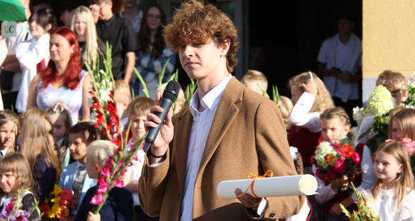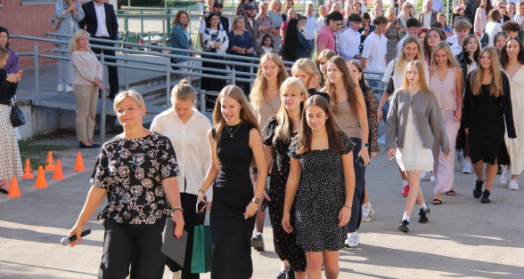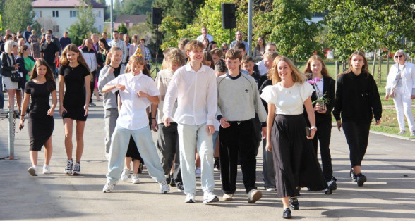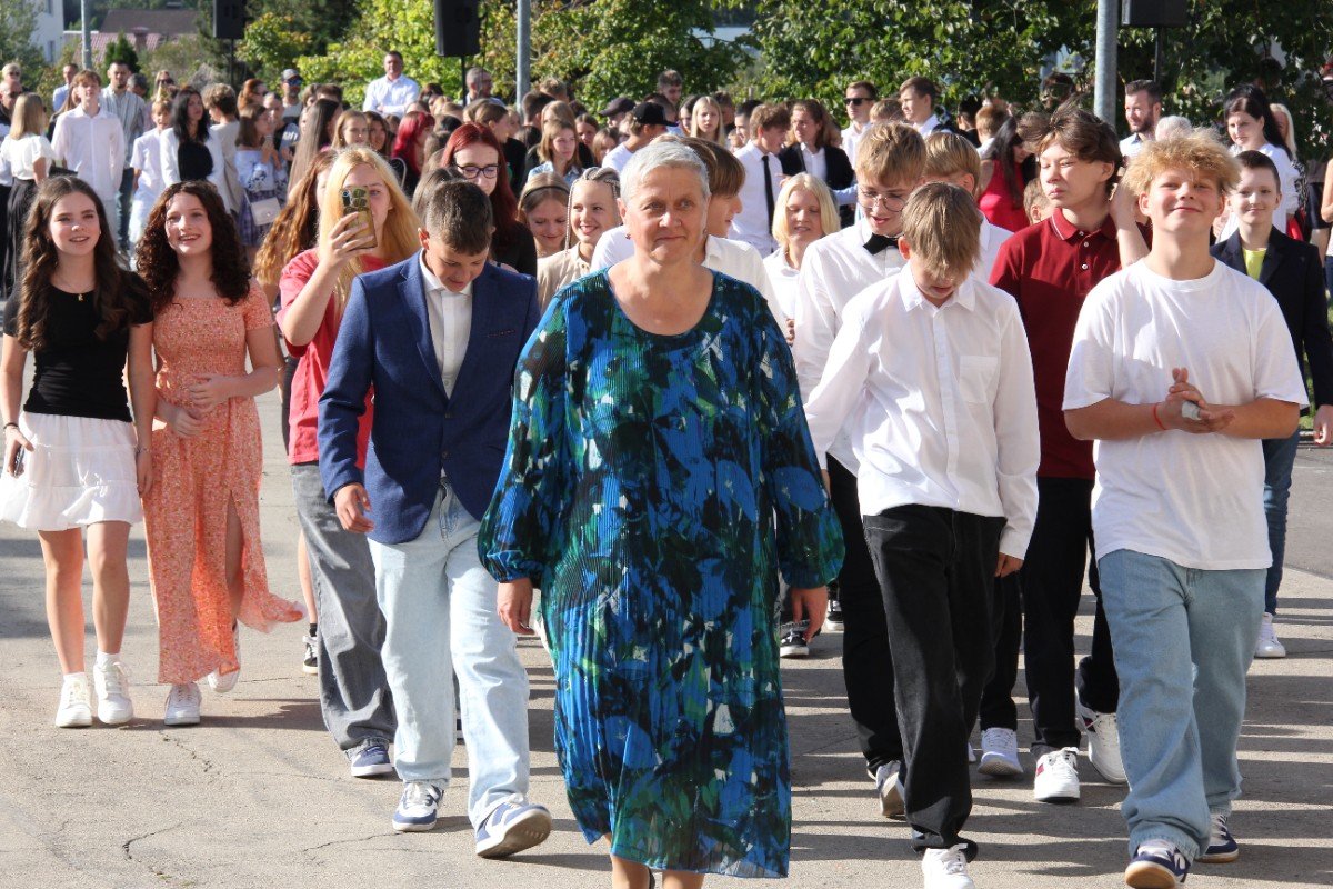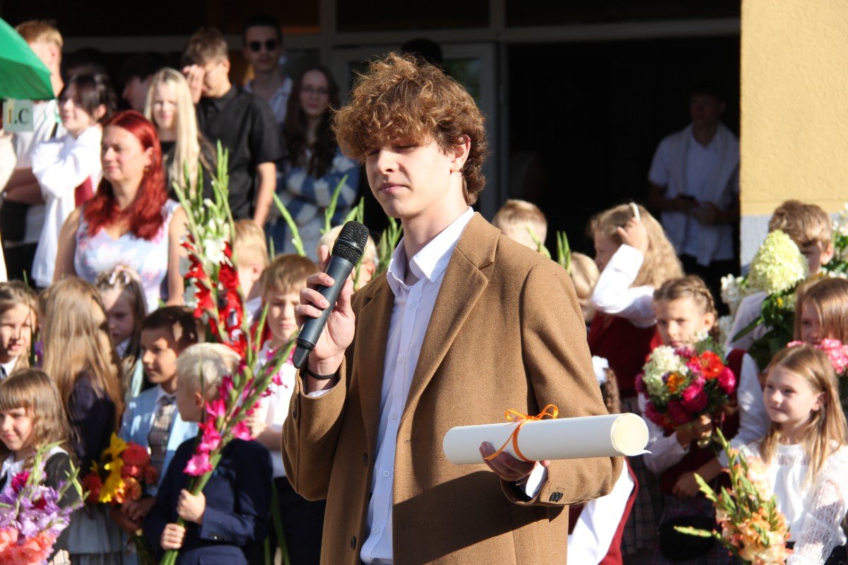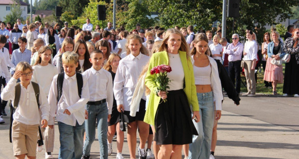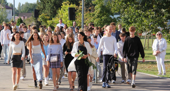 Šogad Zinību diena "iekritusi" 2.septembrī, bet tas noteikti nemaina atkalredzēšanās prieku un svētku sajūtu. Pievēršot uzmanību skolas vērtībām: Laikam, Cilvēkam, Izaugsmei, Darbam un Atbildībai, skolēnus un skolotājus uzrunā skolas direktors Normunds Balabka. "Man jau otro gadu Zinību diena ir savādāka, bet tik ļoti pietrūkst tās skolas sajūtas," svētku brīdī ar savām sajūtām dalās viešņa - Grēta Grantiņa.