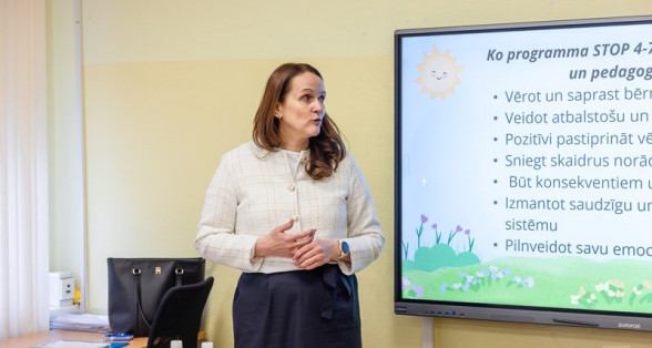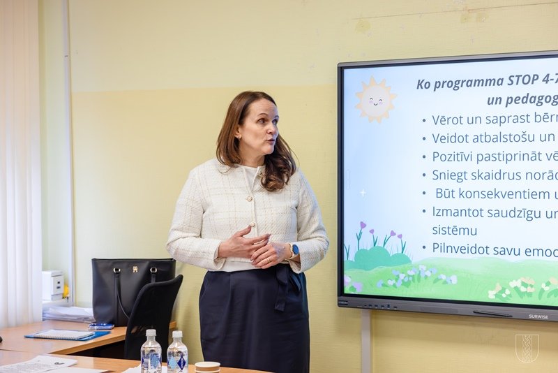 Ina Melkina( Ropažunovada pašvaldības IJKS departamenta bērnu lietu speciālists ) un Sanita Selecka( Ropažu vidusskolas direktores vietniece audzināšanas jomā) dalījās savā pieredzē par Labbūtību (programmu STOP4-7, EMU, MOT, KiVa u.c. ) pievienoto vērtību.